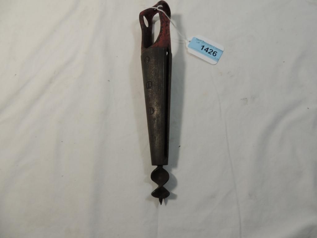 VINTAGE ANTIQUE BUNG HOLE AUGER REAMER DRILL BARREL WINE TOOL AS SHOWN SEE PHOTO FOR MORE DETAILS.