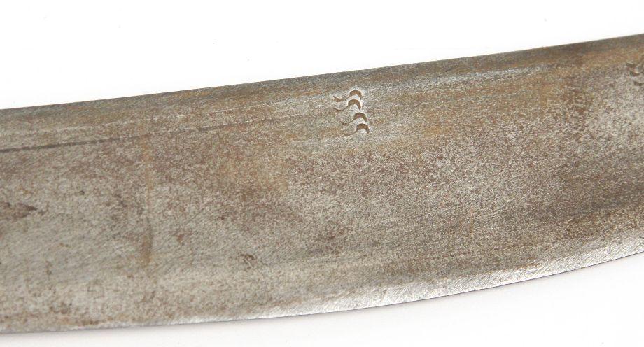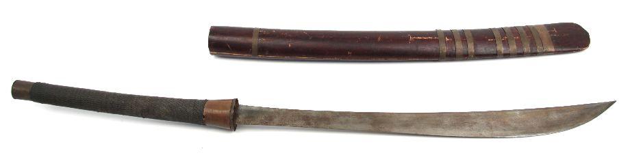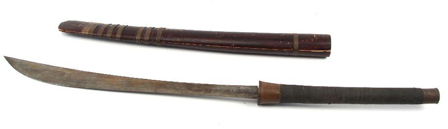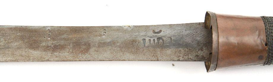 Dha in very good condition with 19 inch blade and 11 inch copper and wire handle. Script to blade.