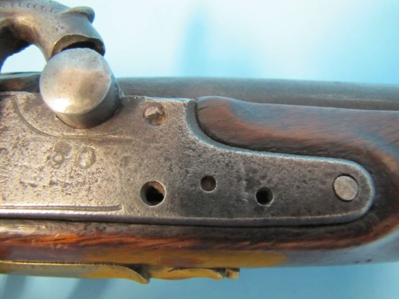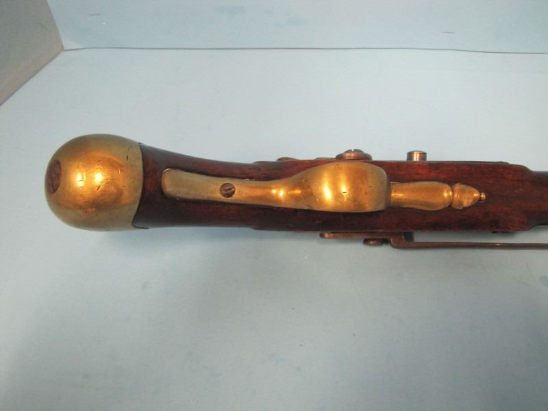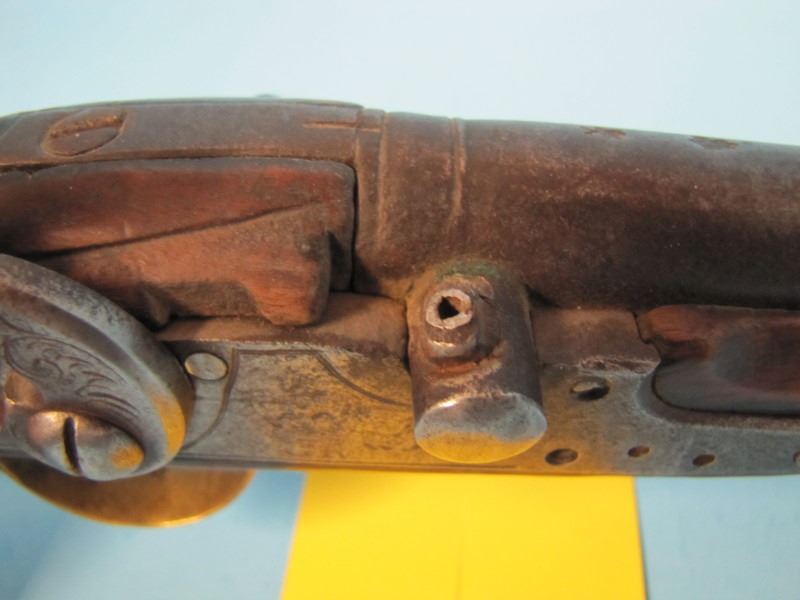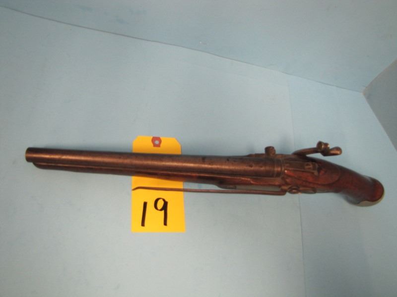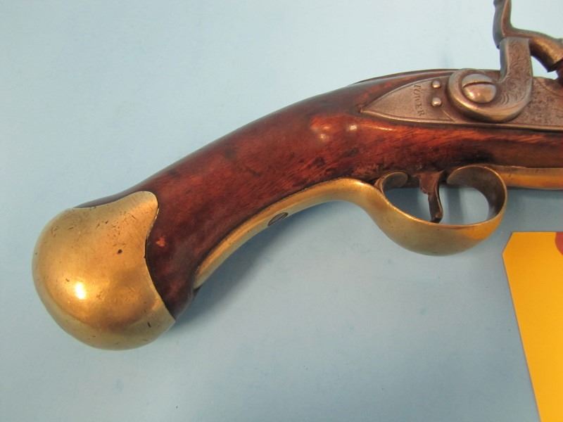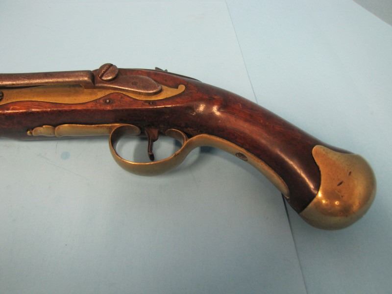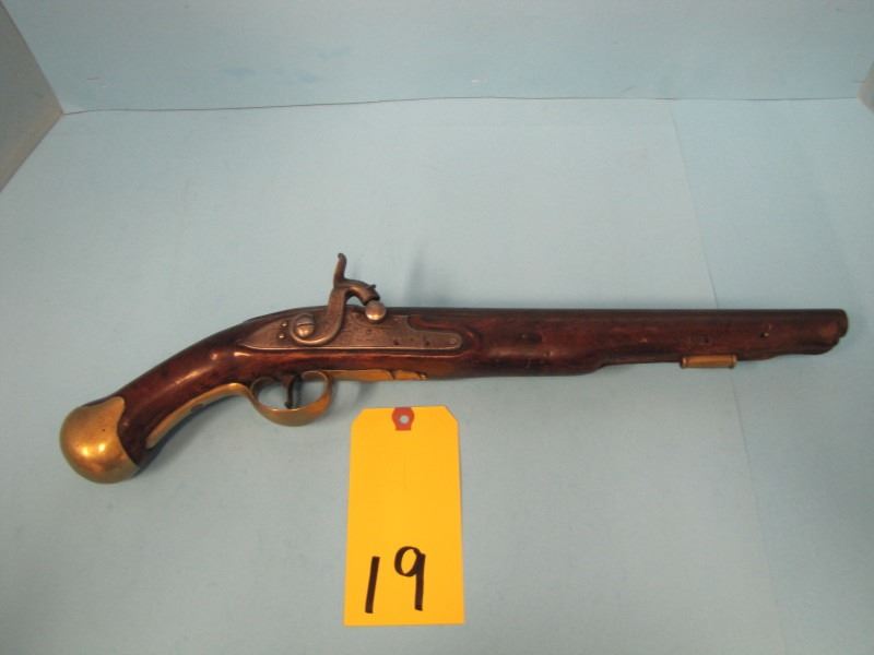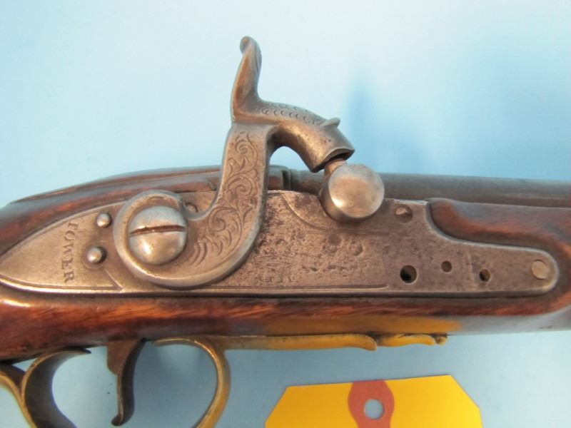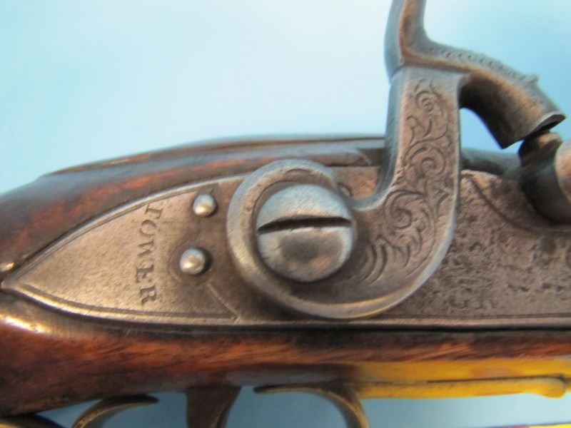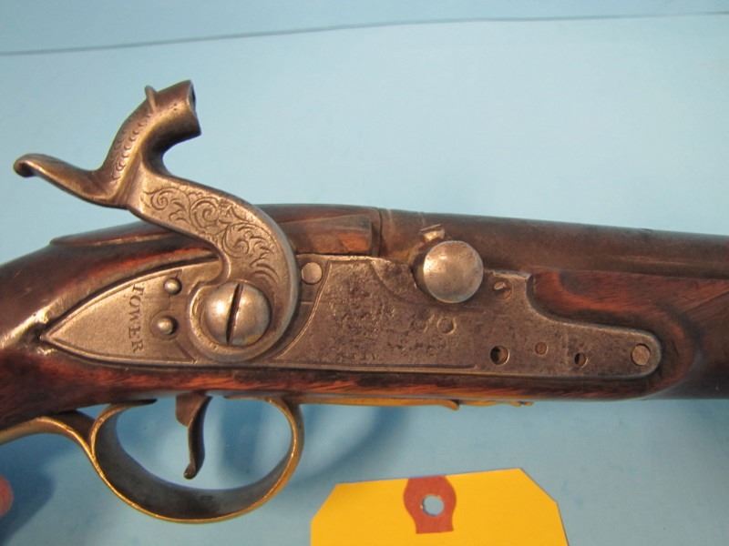 British Sea Service converted percussion pistol. (1716/77) 57 caliber made by Tower Arms co. Belt Pistol. Barrel length is 12 inches, NO RAMROD, SOME SCREWS MISSING.
