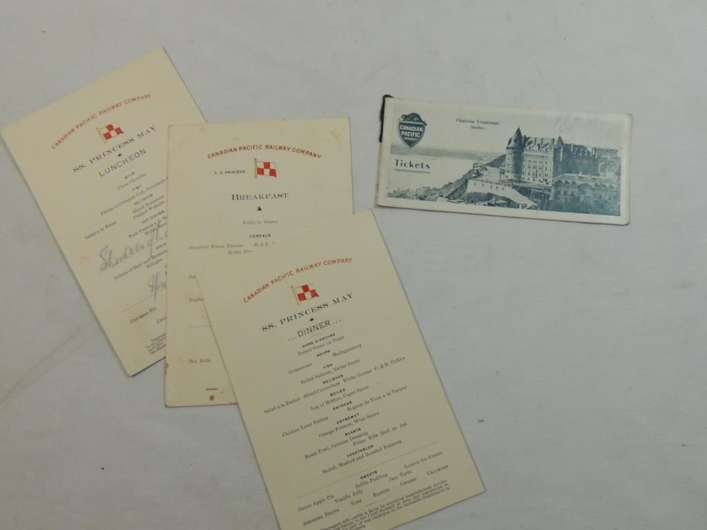 TRIP MENUS COLLECTIBLE EPHEMRA VINTAGE ALASKIAN CRUSE CANADIAN PACIFIC RAILWAYS AS SHOWN SEE PHOTO FOR MORE DETAILS.