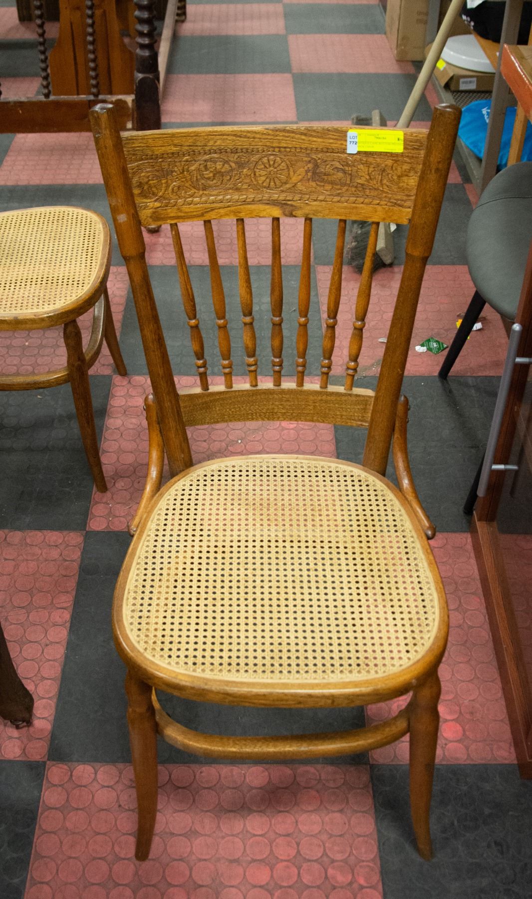 ANTIQUE CANE BOTTOM PRESSED BACK CHAIR