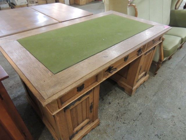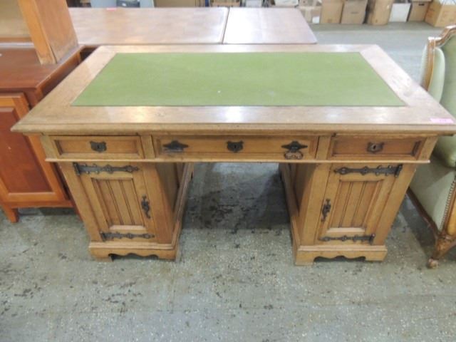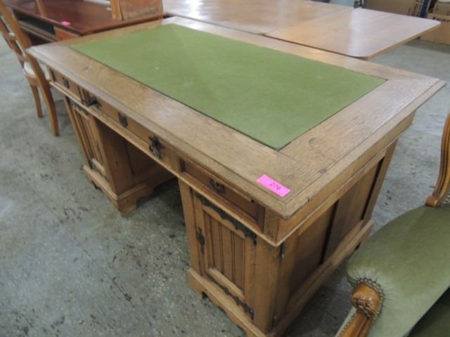 ANTIQUE CAPTAINS STYLE GOTHIC SOLID OAK DESK