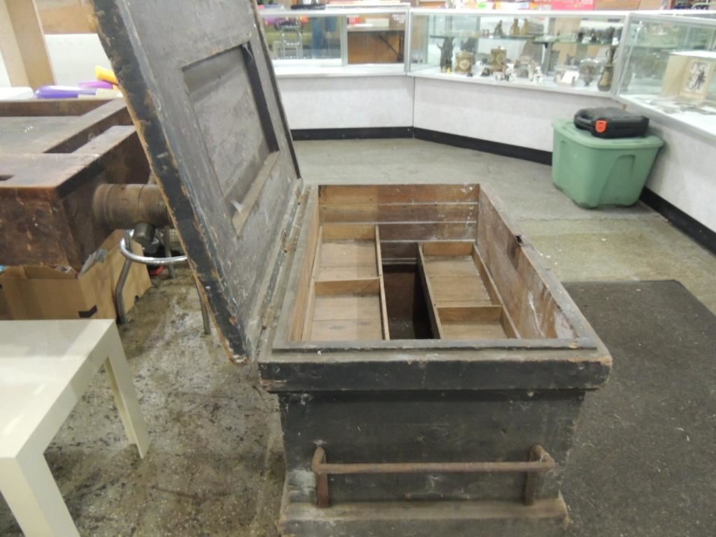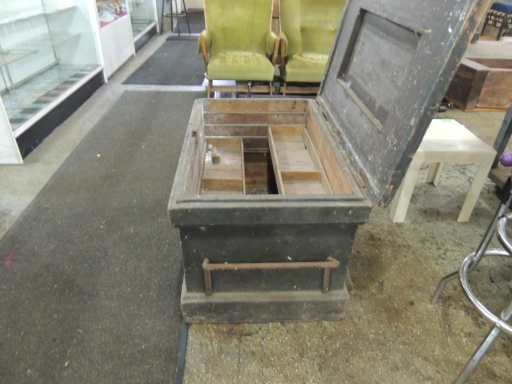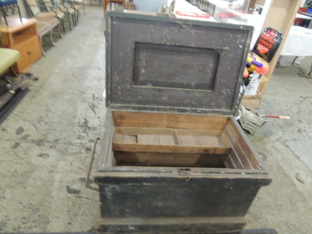 TOOL CHEST, ANTIQUE CARPENTERS CHEST, ANTIQUE TOOL BOX, CHEST, STORAGE TRUNK, CARPENTERS TOOLS, SLIDING TRAYS, SAW STORAGE COMPARTMENT, ANTIQUE CHARPENTERS TOOL BOX AS SHOWN SEE PHOTO FOR MORE DETAILS.