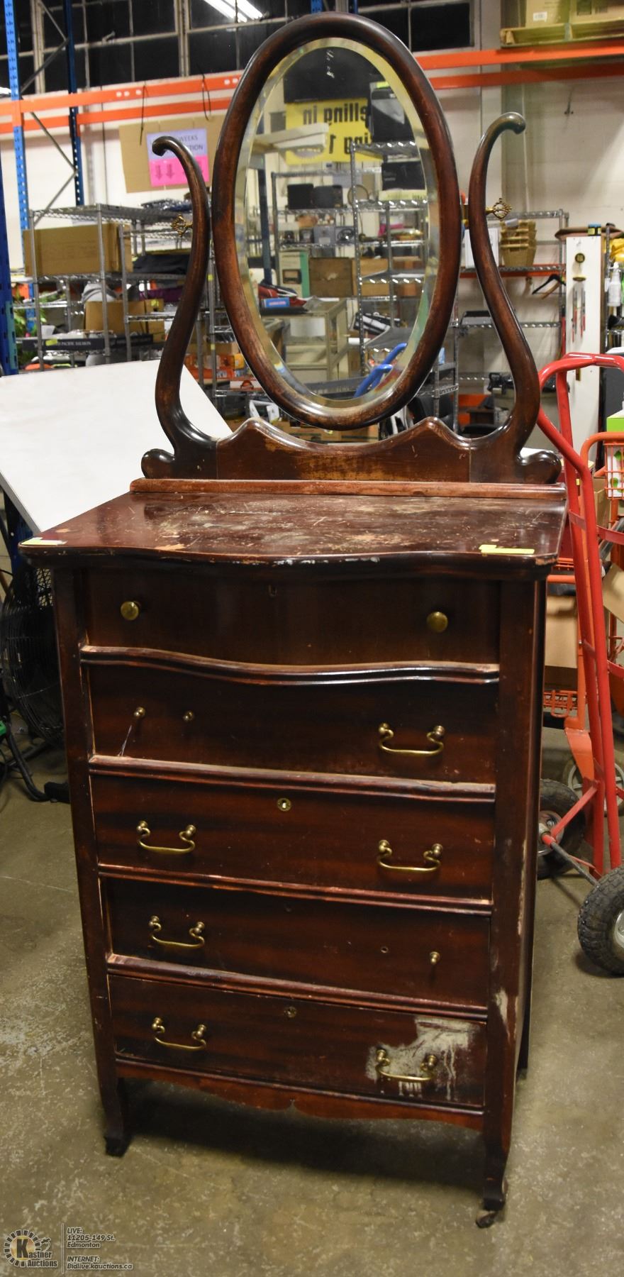 ANTIQUE CARVED FRONT DRESSER WITH MIRROR