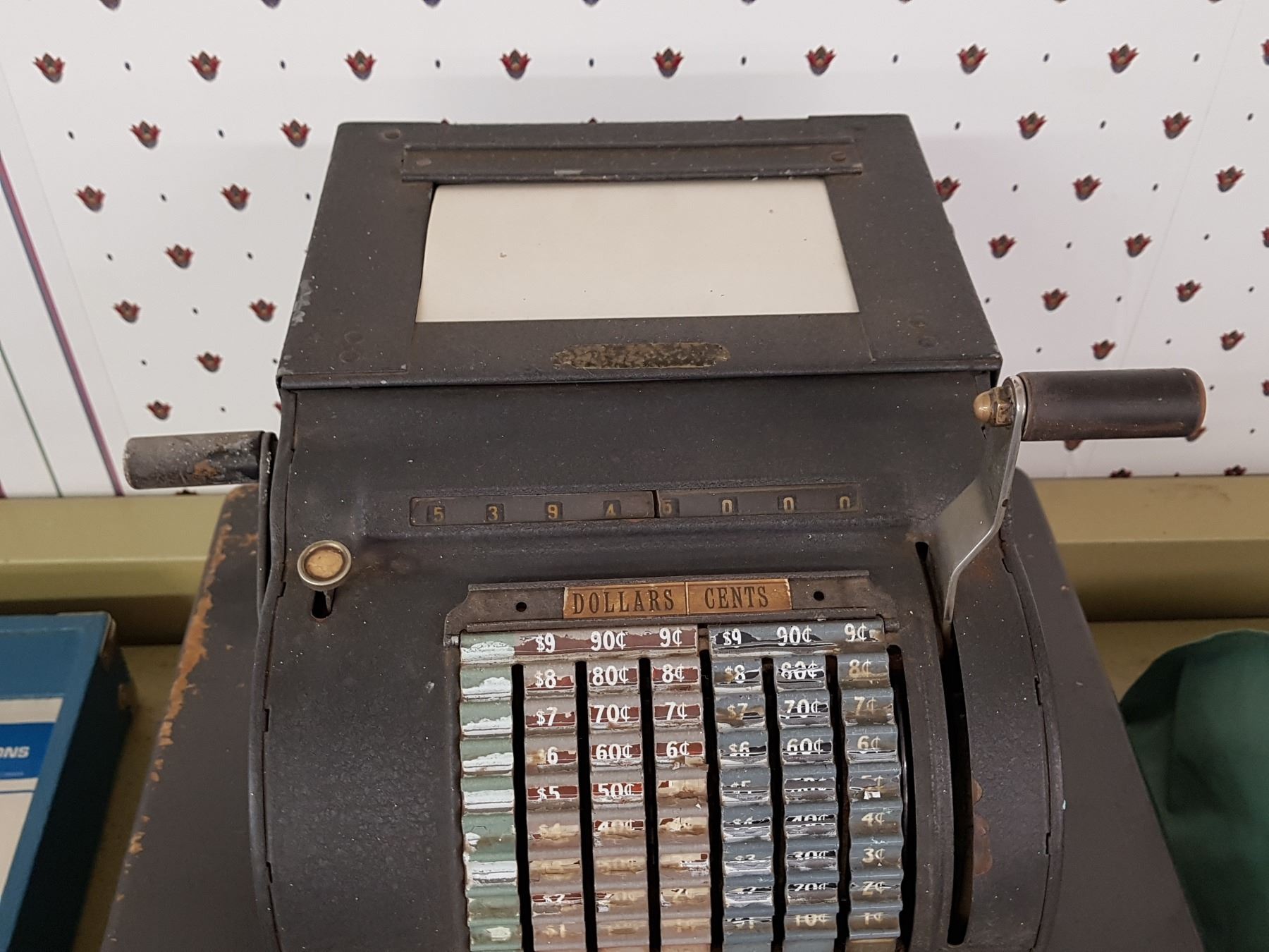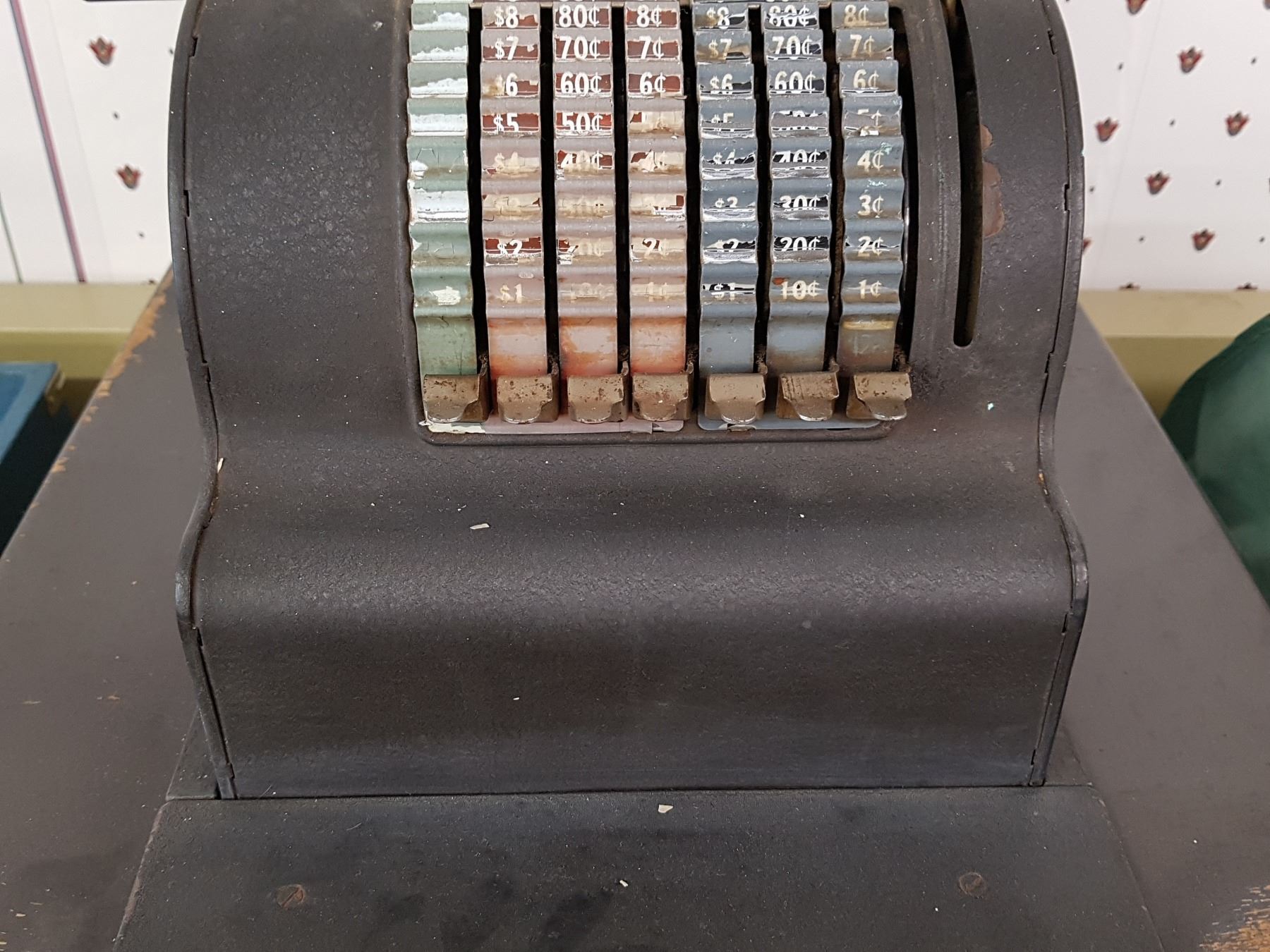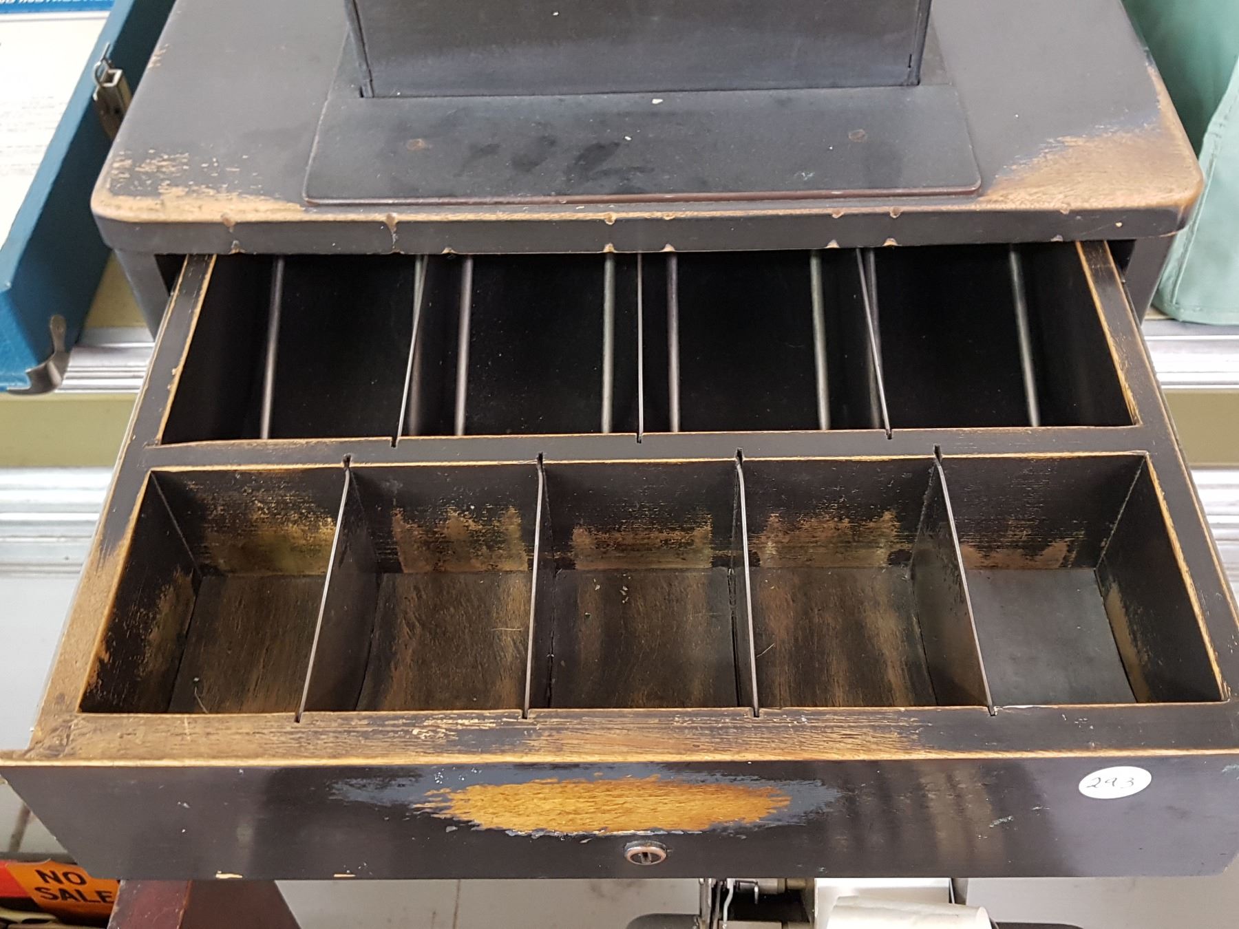 ANTIQUE CASH REGISTER, WOOD AND TIN