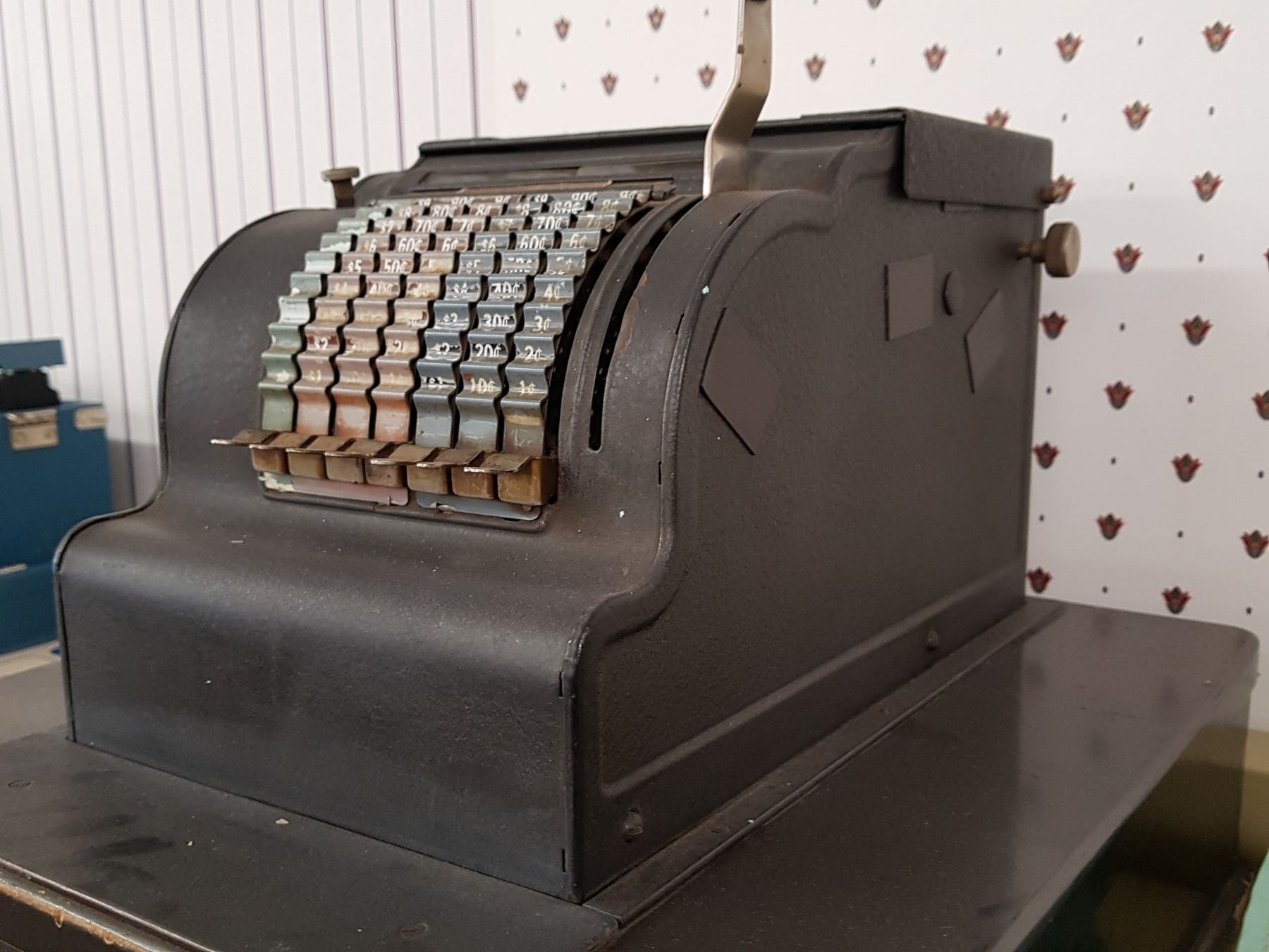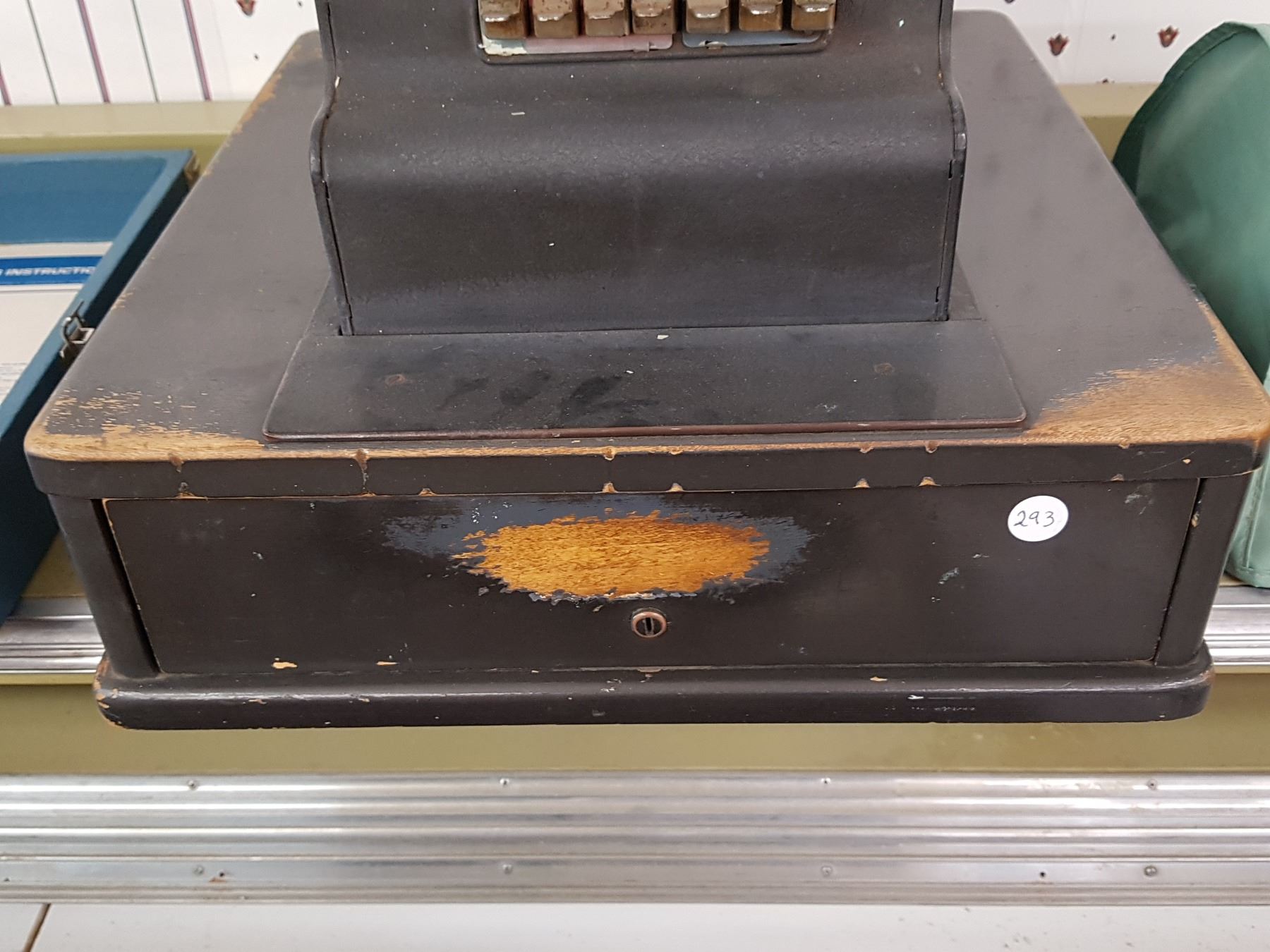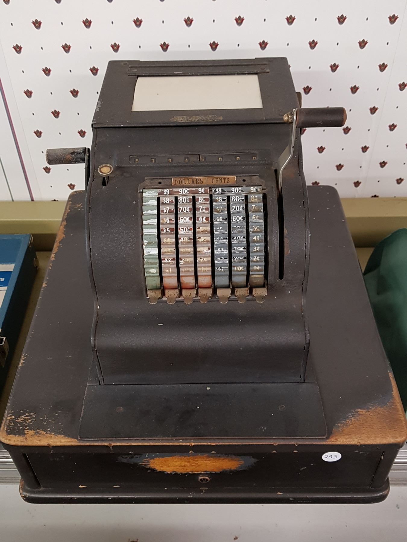 ANTIQUE CASH REGISTER, WOOD AND TIN