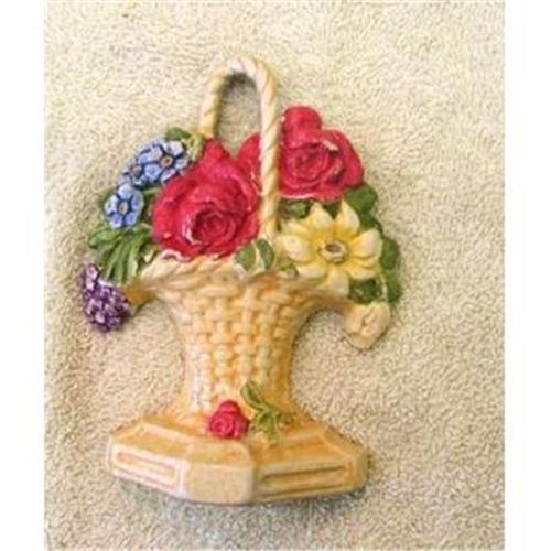 This is a original antique Cast Iron Door Stop Of Flowers In A Basket. If It is 5 1/2" tall and 4 1/4" wide and weighs a little over 2 pounds. It is in excellent condition with no cracks, breaks or repairs. This is not a reproduction.