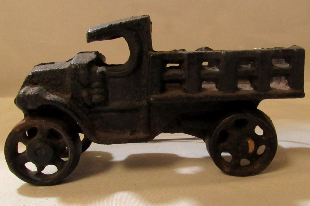 UNKNOWN MAKER. MEASURES ABOUT 4 1/4" LONG. ROLLS. NEEDS A GOOD CLEANING.