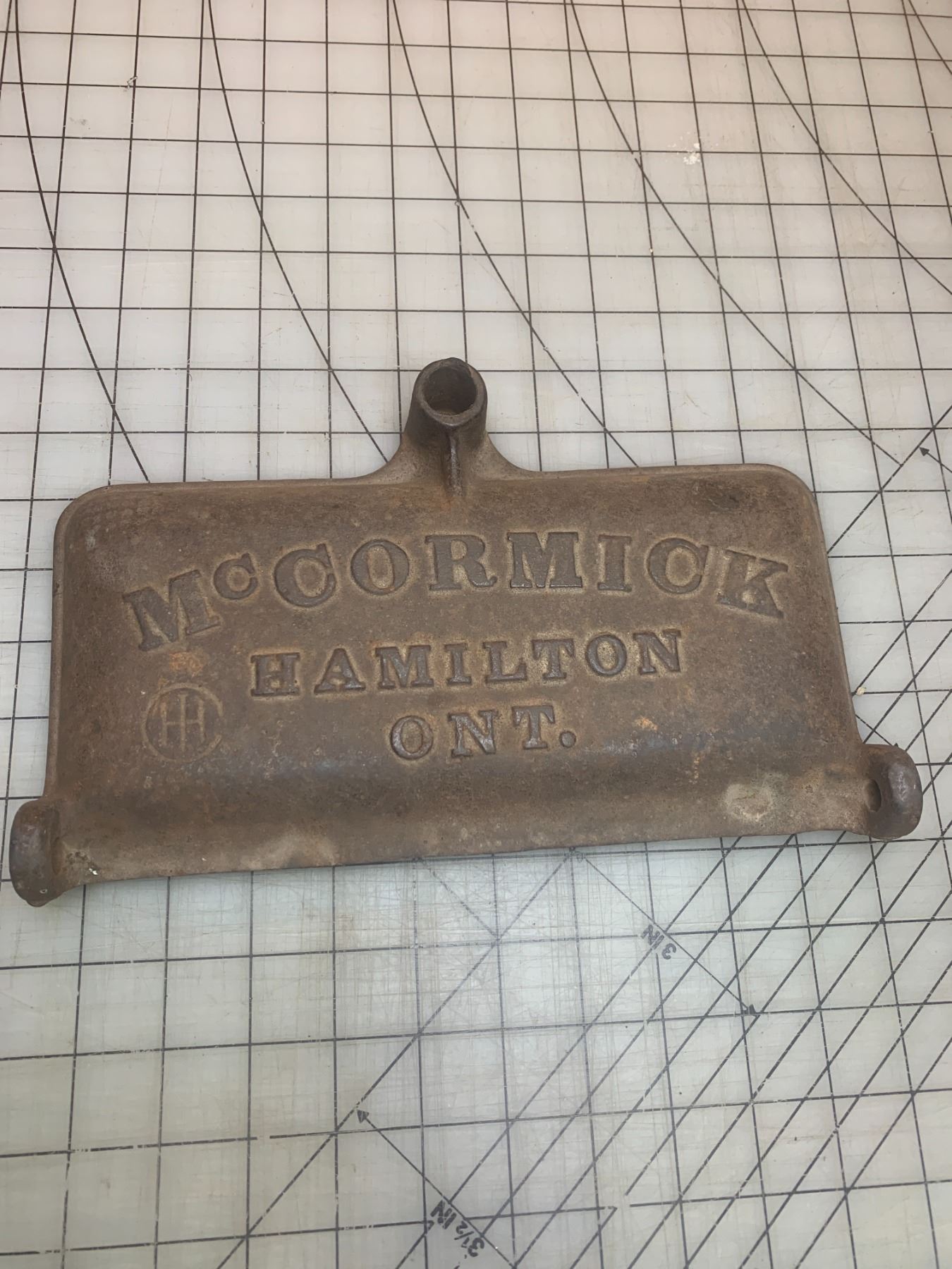 ANTIQUE CAST IRON MCCORMICK IMPLIMENT LID