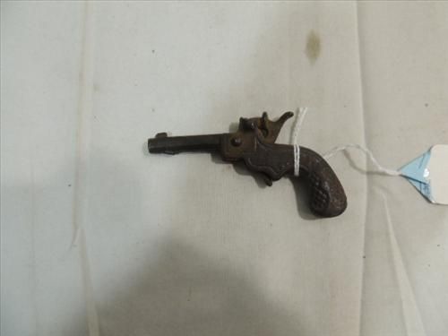 ANTIQUE CAST IRON MINIATURE TOY FLINT LOCK CAP PISTOL. AS SHOWN. VIEW PICTURE FOR DETAIL.