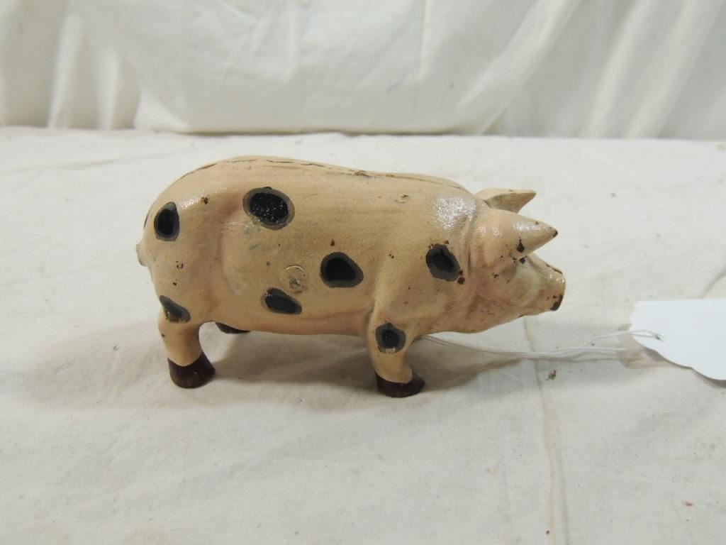 CAST IRON PIG, DECORATIVE PIG, CAST IRON PIG PAINTED AS SHOWN SEE PHOTO FOR MORE DETAILS