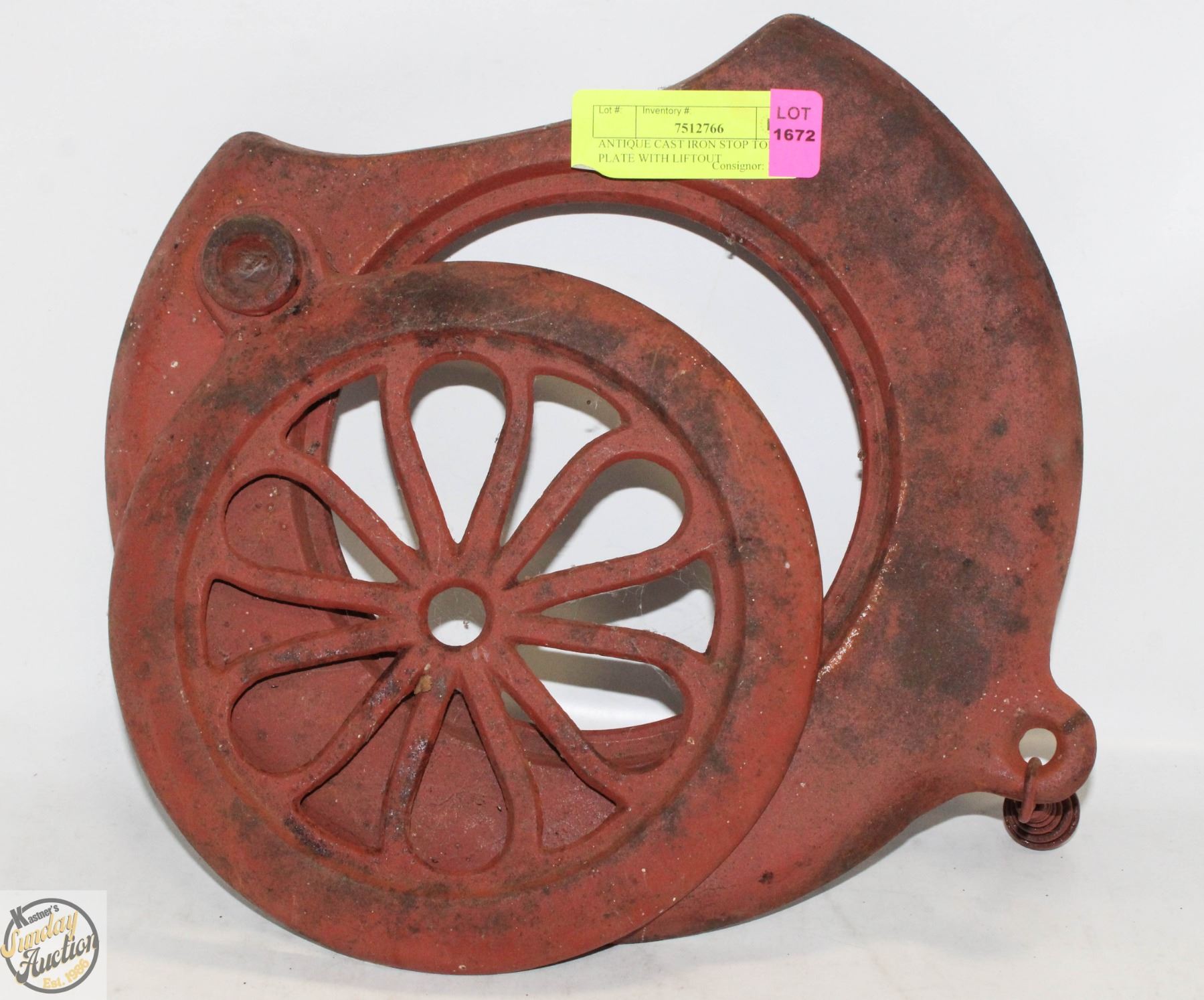 ANTIQUE CAST IRON STOP TOP PLATE WITH LIFTOUT