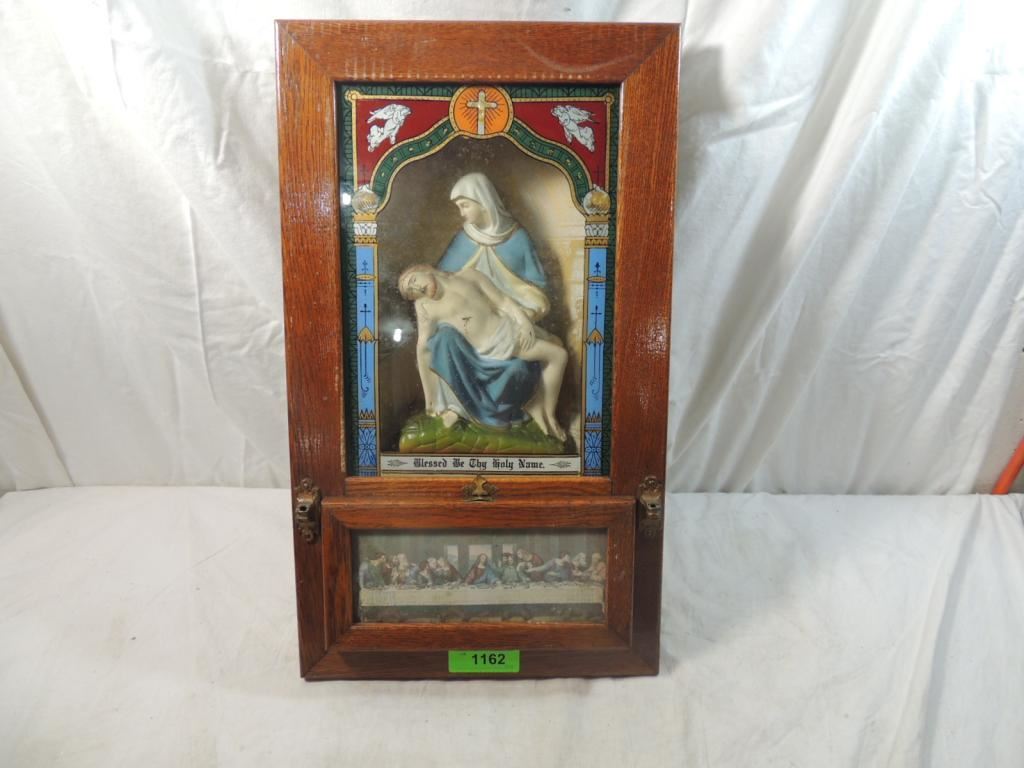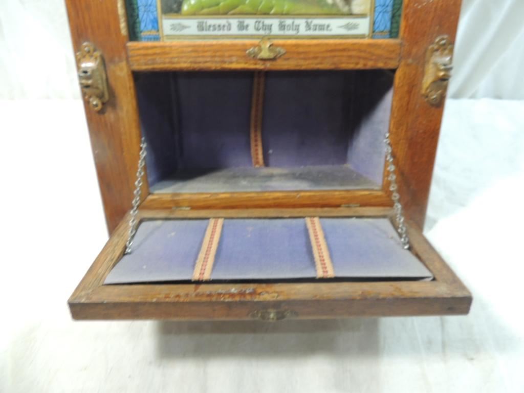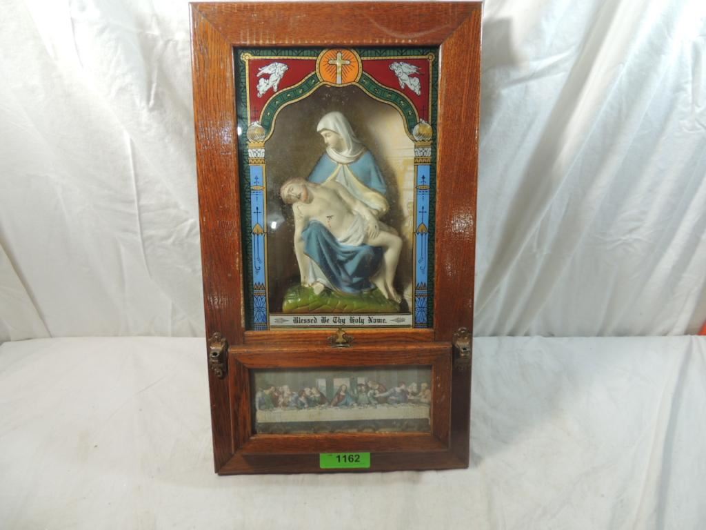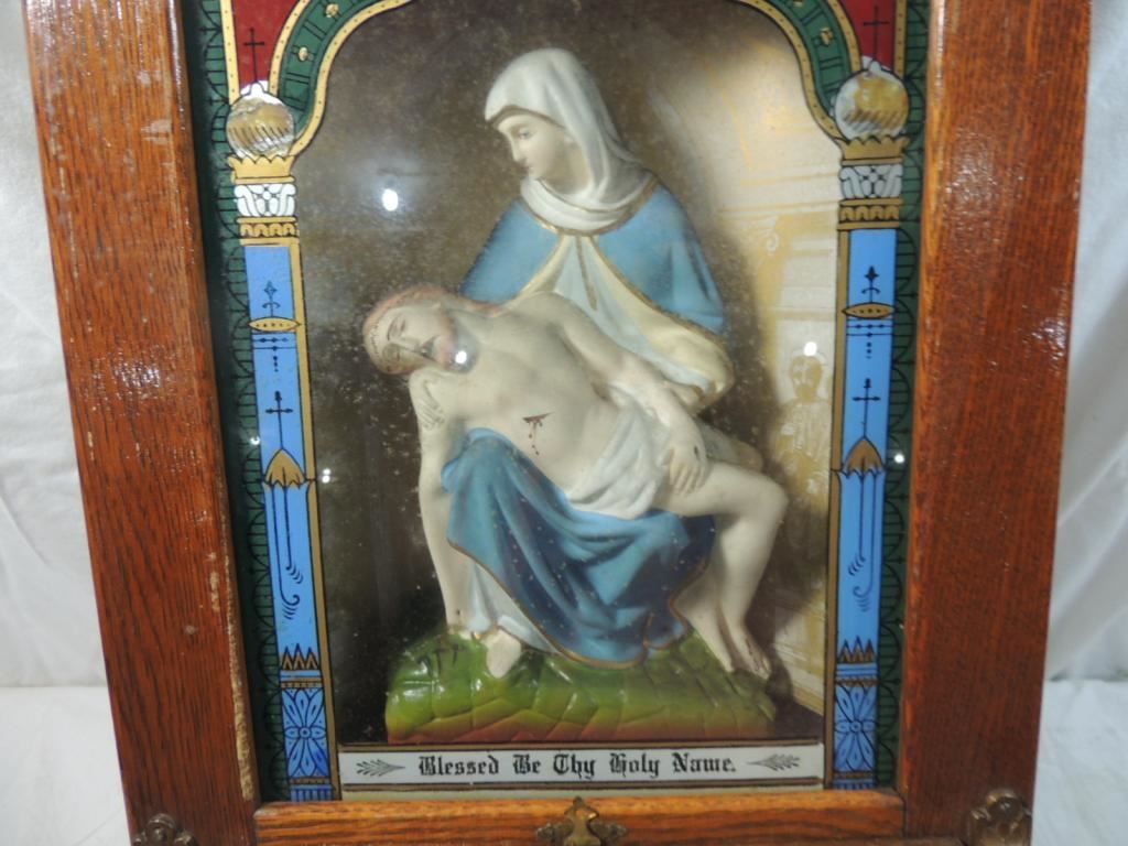 ANTIQUE OAK CATHOLIC HOLY NAME SHRINE RELIGIOUS PRAYER SHADOW BOX JESUS MARY GREAT LOOKING ANTIQUE CATHOLIC , LAST RIGHTS, SICK CALL SACRAMENT SHADOWBOX AS SHOWN SEE PHOTO FOR MORE DETAILS