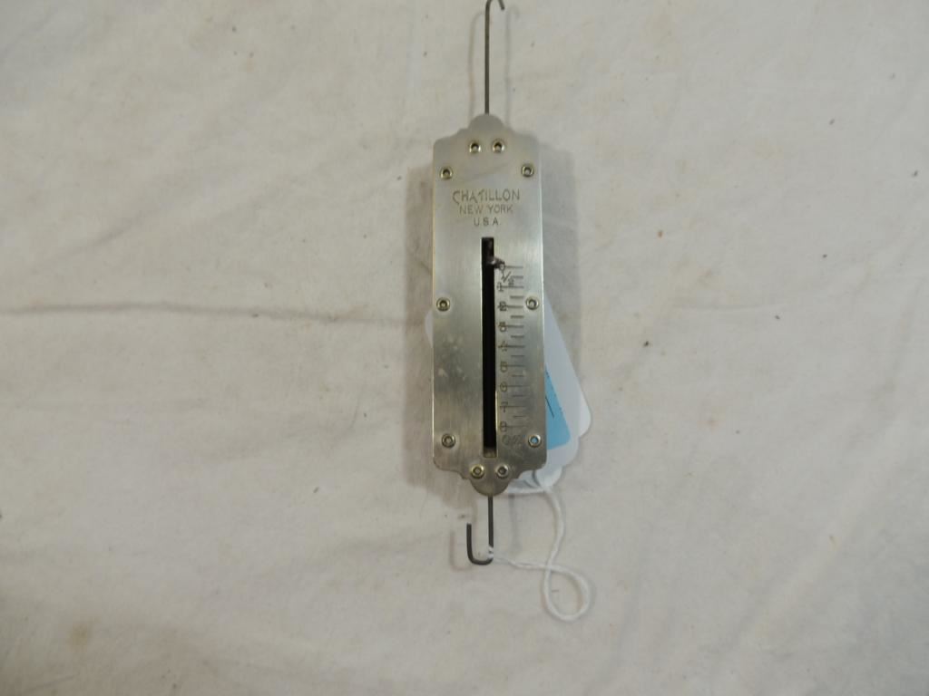 8 OZ CHATILLON NEW YORK HANGING SCALE, COLLECTIBLE SCALE, VINTAGE SCALE, AS SHOWN SEE PHOTO FOR MORE DETAILS.