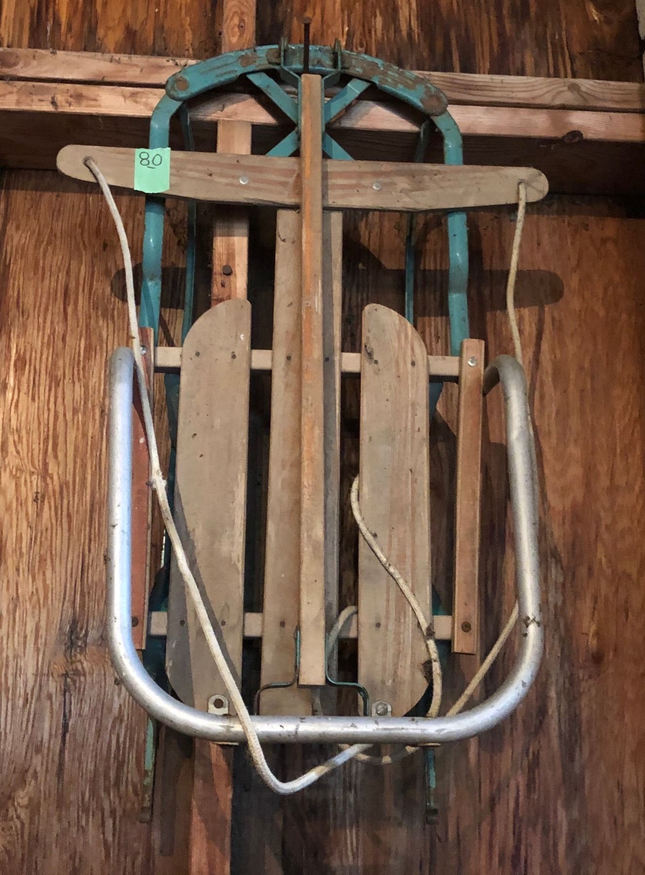 SLED HAS PULL ARM & SEAT BACK.
