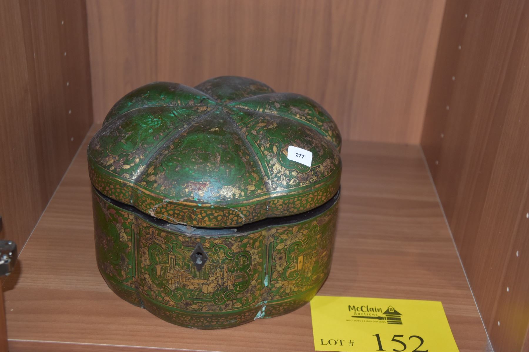 ANTIQUE CHINESE EXPORT GREEN & GOLD TEA CADDY, MELLON SHAPE (8 1/2")