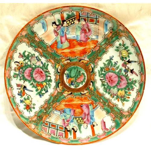 <table width="100%" border="0" cellspacing="0" cellpadding="4"><tr><td><em> </em></td></tr><tr> <td width="100%"> Artistically hand painted antique Chinese plate of medium size. The piece has the Rose Medallion or Mandarin Rose pattern. Two of the segments show people in characteristic Chinese costumes and the other two are showing richly painted birds and flowers. This is real Chinese porcelain of the 19th century, and not the modern reproductions. Approximately 9 inches in diameter. Condition: very good. </td></tr><tr> <td> </td></tr><tr> <td>Reference #: C20</td></tr><tr><td>Condition:good</td></tr><tr><td>Year:Ching Dynasty</td></tr><tr><td>Title:ANTIQUE CHINESE MANDARIN ROSE PLATE, 19th cent</td></tr><tr><td>Location:Toronto, Canada</td></tr></table>