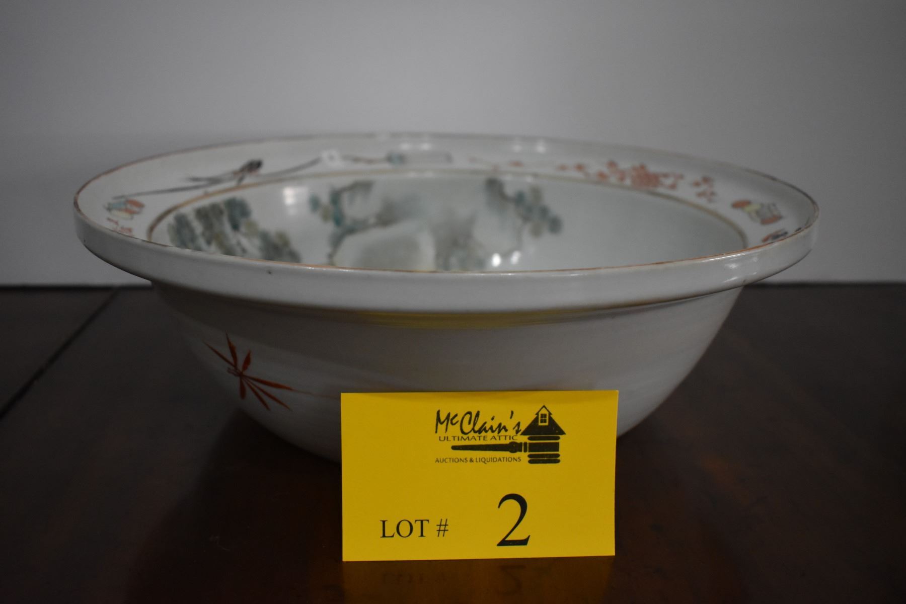 ANTIQUE CHINESE POLYCHROME PORCELAIN WASH BASIN (14.25" D)