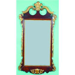 ANTIQUE CHIPPENDALE STYLE MIRROR - Mahogany with gilt shell, foliate and drapery decoration; some...