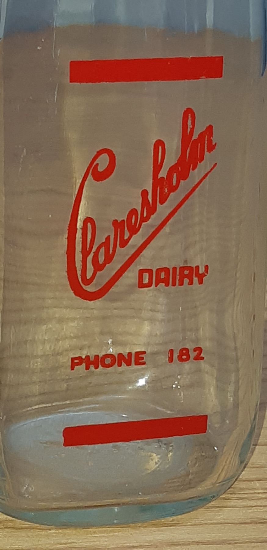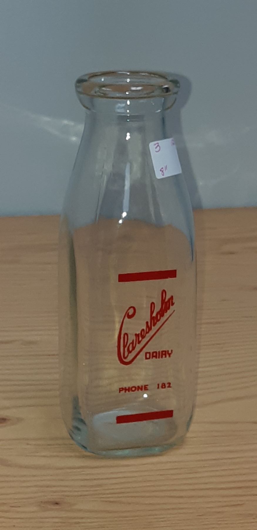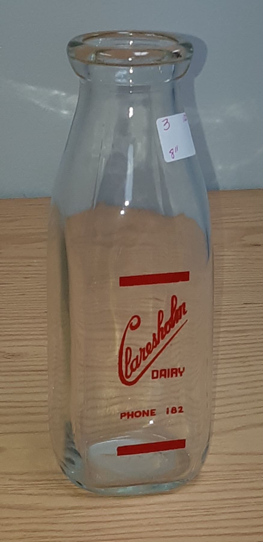ANTIQUE "CLARESHOLM DAIRY" CREAM BOTTLE 8" TALL