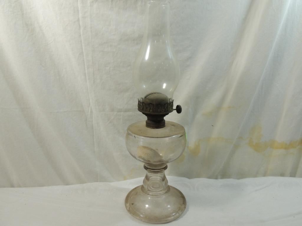 HURRICANE LAMP, OIL LAMP ANTIQUE GLASS LAMP, CLEAR GLASS LAMP, OIL LAMP, DECORATIVE LAMP AS SHOWN SEE PHOT FOR MORE DETAILS