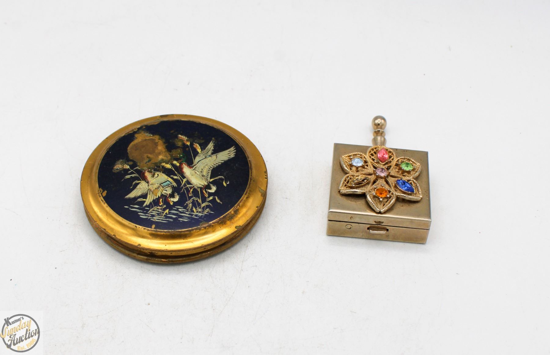 ANTIQUE COMPACT + VINTAGE FOLDING POCKET ASHTRAY