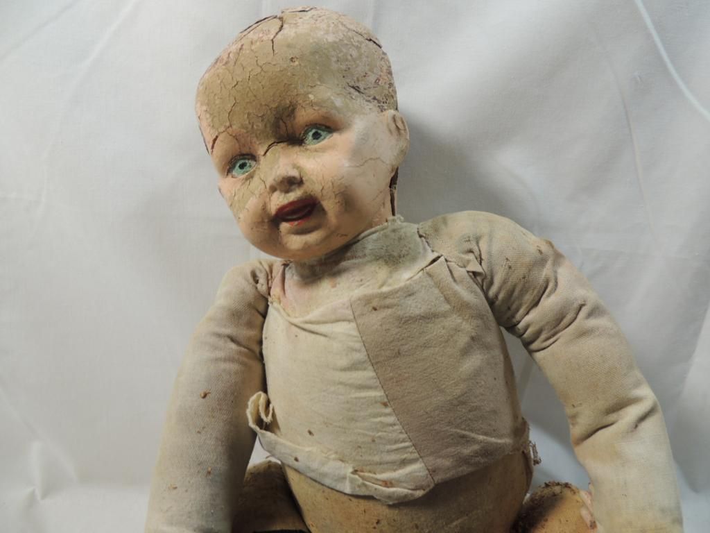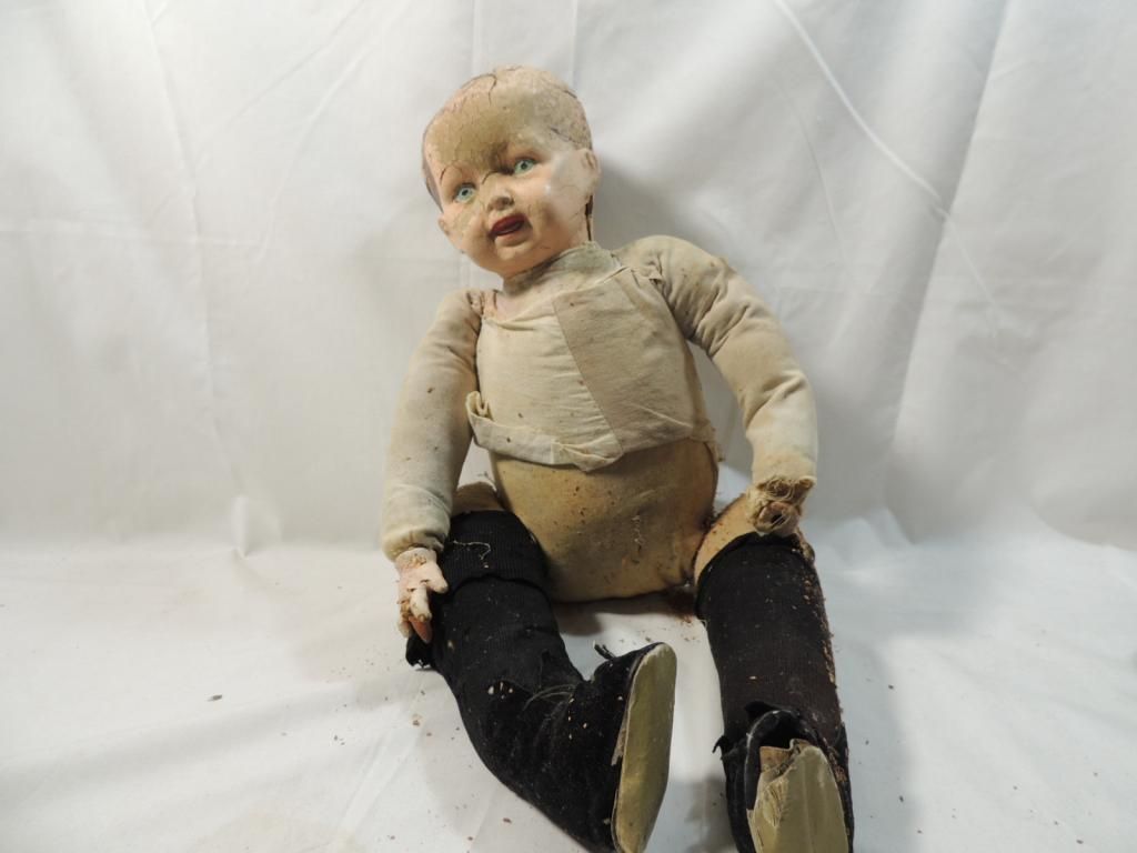 ANTIQUE DOLL SAWDUST FILLED. AS SHOWN. SEE PHOTO FOR MORE DETAILS.