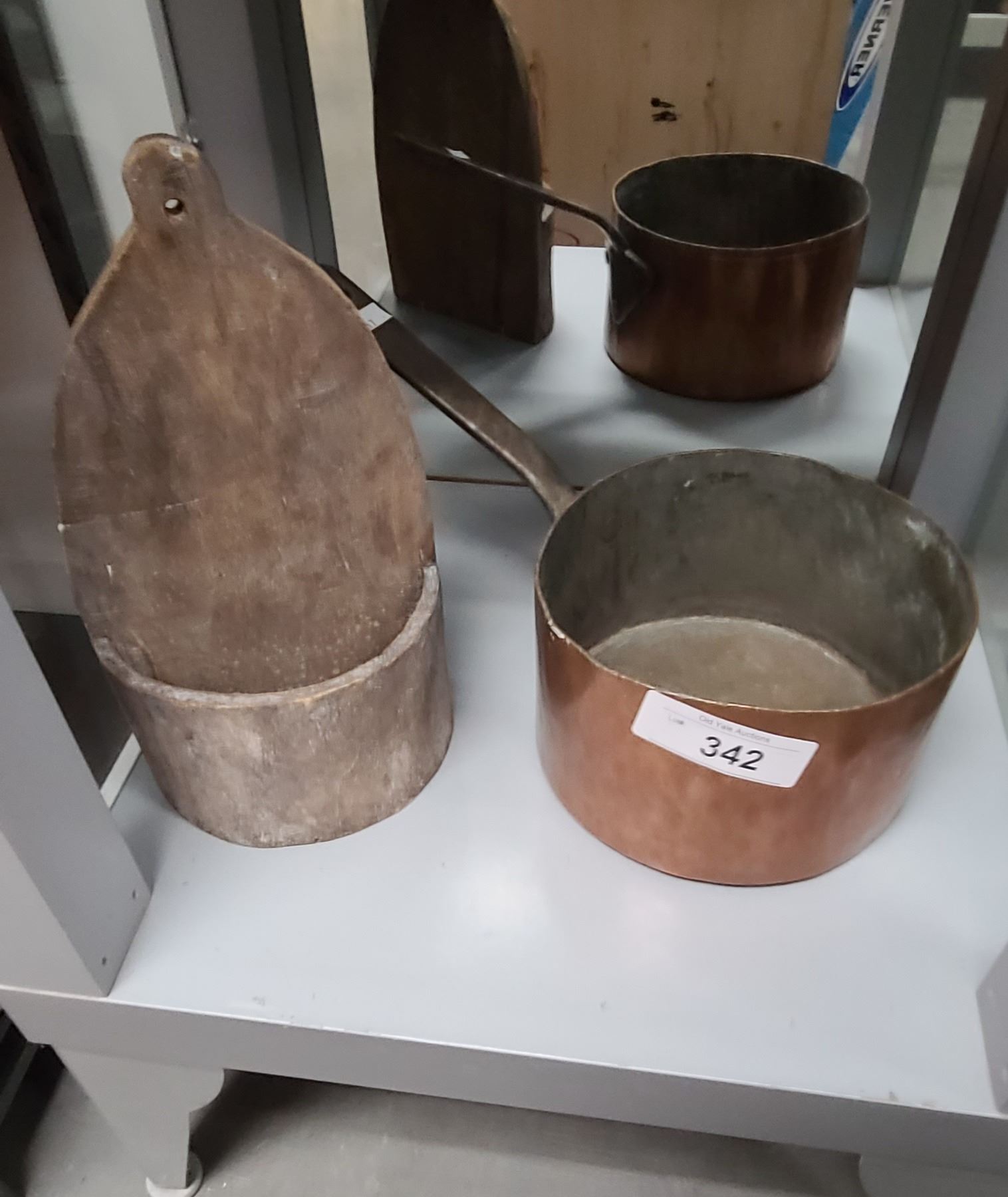 ANTIQUE COPPER POT & WOOD WALL CADDY