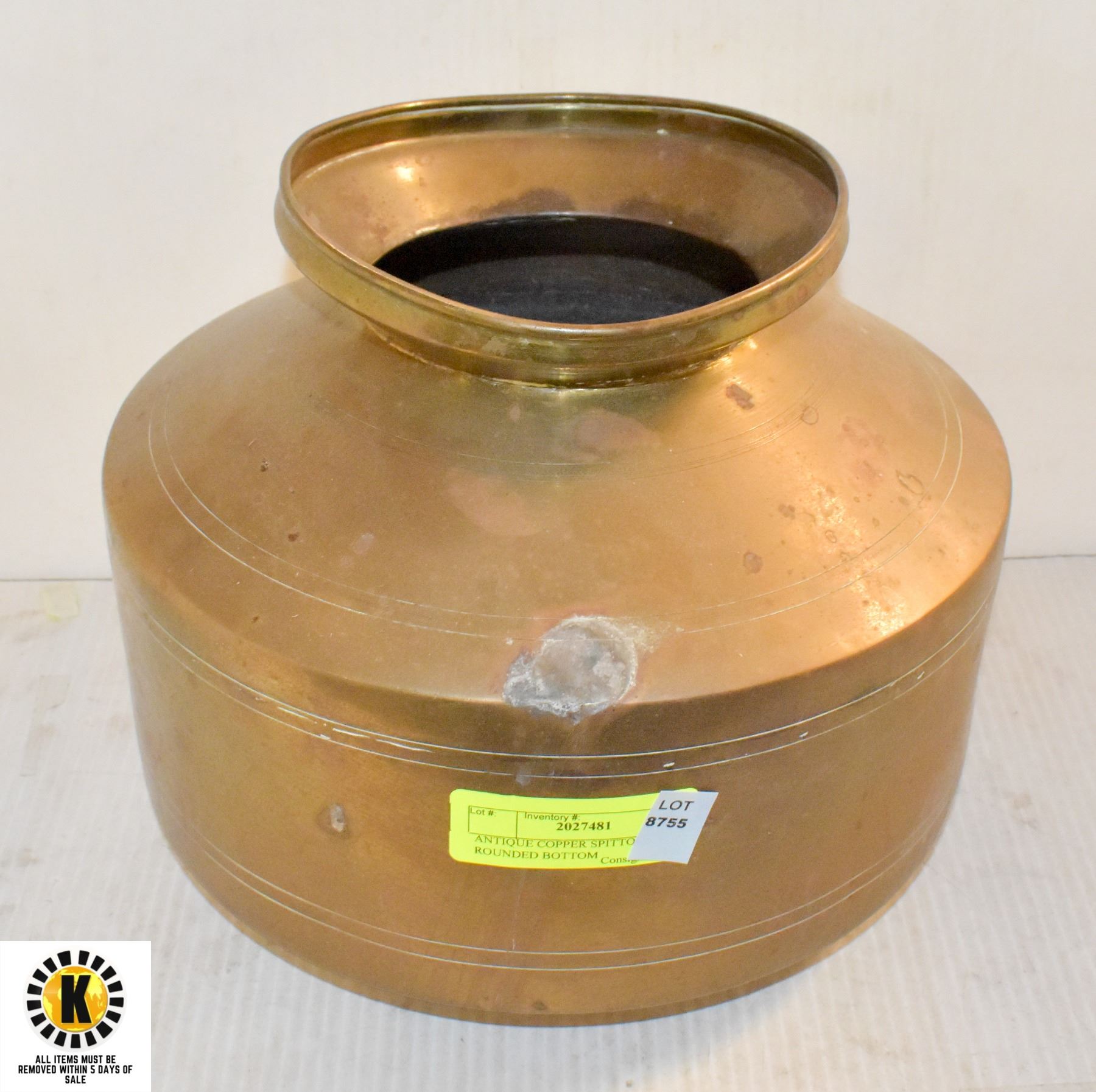 ANTIQUE COPPER SPITTOON W ROUNDED BOTTOM