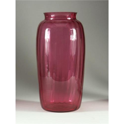 GLASS: Large cranberry glass vase with optic rib body, some fleabites noted to rim, 17.75'', early 20th century.