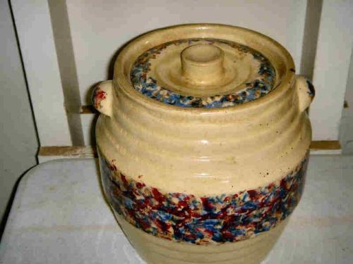 ANTIQUE CROCK COOKIE JAR - LID CRACKED