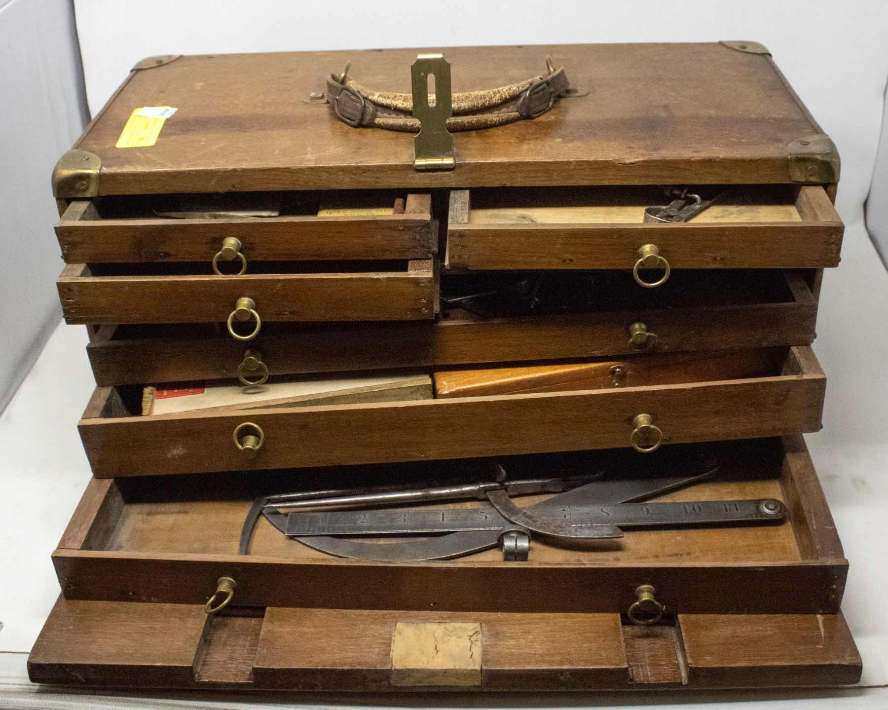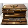 ANTIQUE CUSTOM WOOD TOOL BOX W DRAWERS & TOOLS