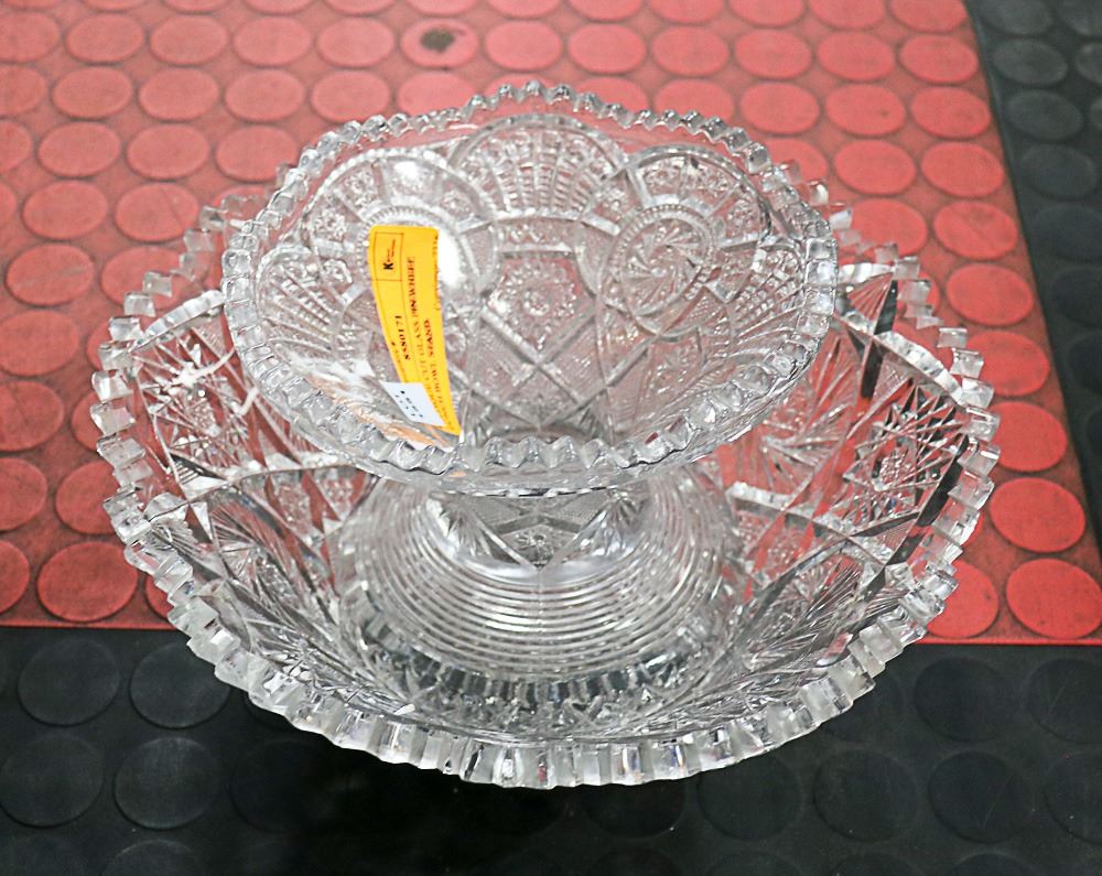 ANTIQUE CUT GLASS PUNCH BOWL STAND