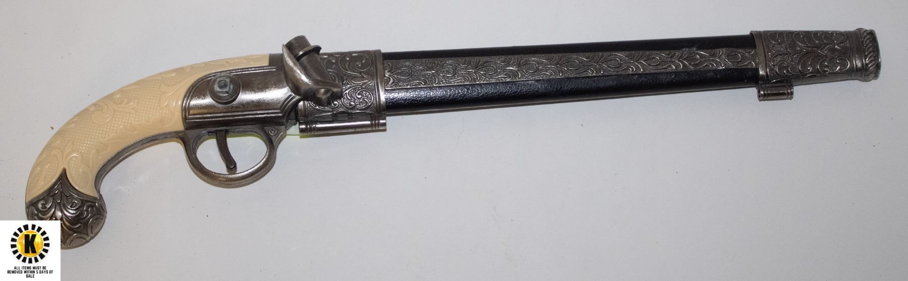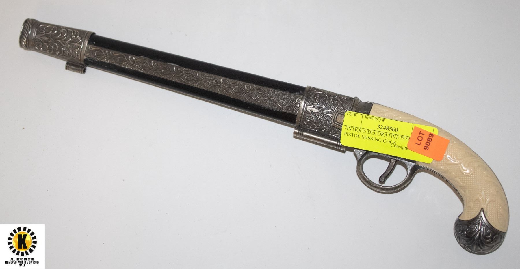 ANTIQUE DECORATIVE POWDER PISTOL MISSING COCK