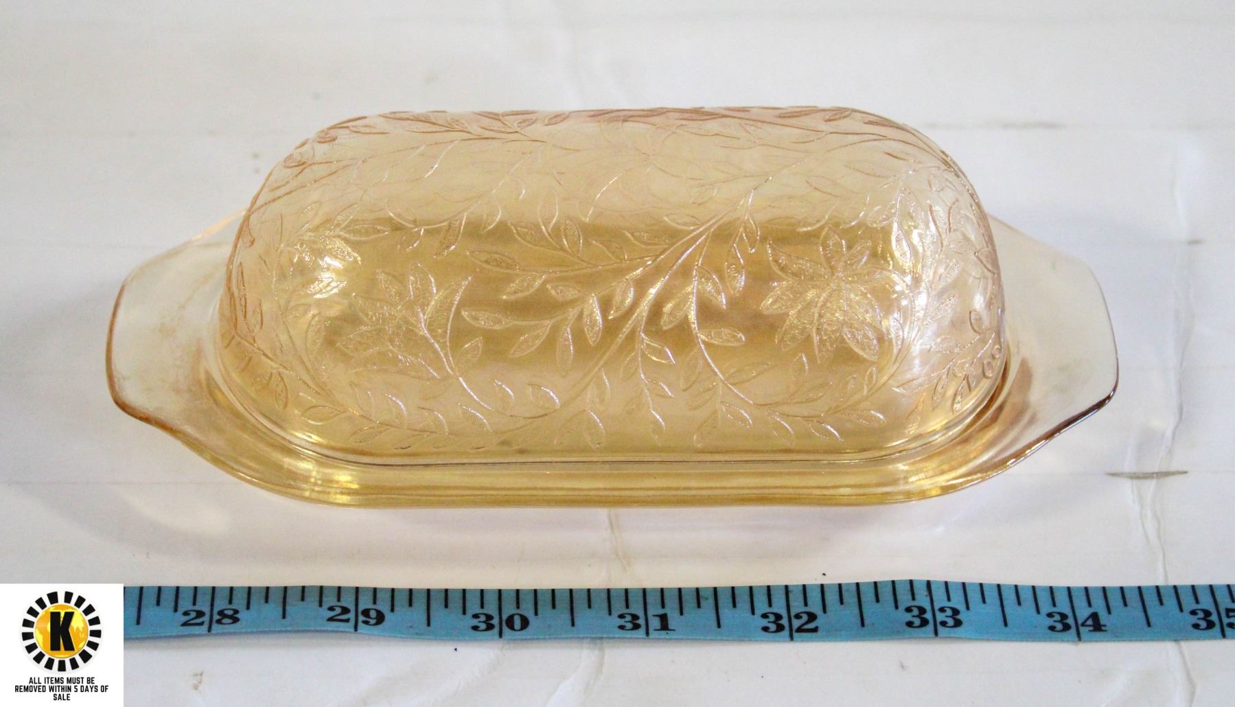ANTIQUE DEPRESSION GLASS LIDDED BUTTER DISH
