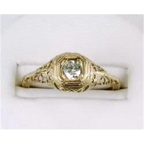 Antique 14k White Gold Filigree ring featuring a sparkling round DIAMOND = .15 Carats! The Diamond is surrounded by outstanding filigree work. The ring is a Size 7 and I can resize it for you.