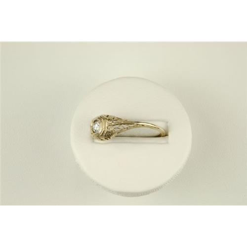 Antique 14k White Gold Filigree ring featuring a sparkling round DIAMOND = .15 Carats! The Diamond is surrounded by outstanding filigree work. The ring is a Size 7 and I can resize it for you.