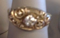 ANTIQUE DIAMOND LADIES RING, .20 CARAT CENTER DIAMOND .30 TOTAL, 2.9 GRAMS 14K W GOLD
