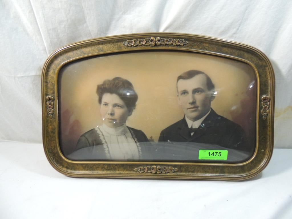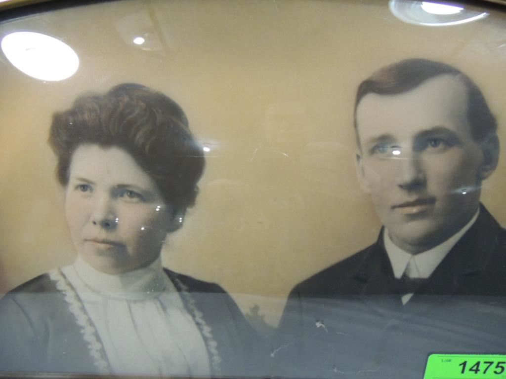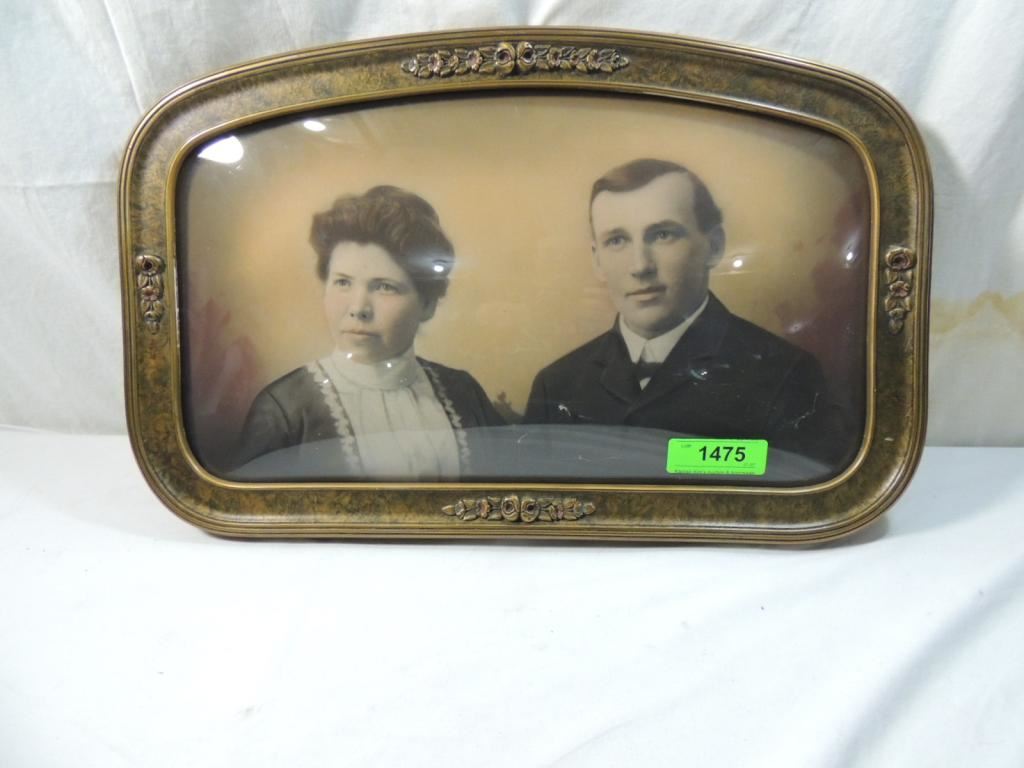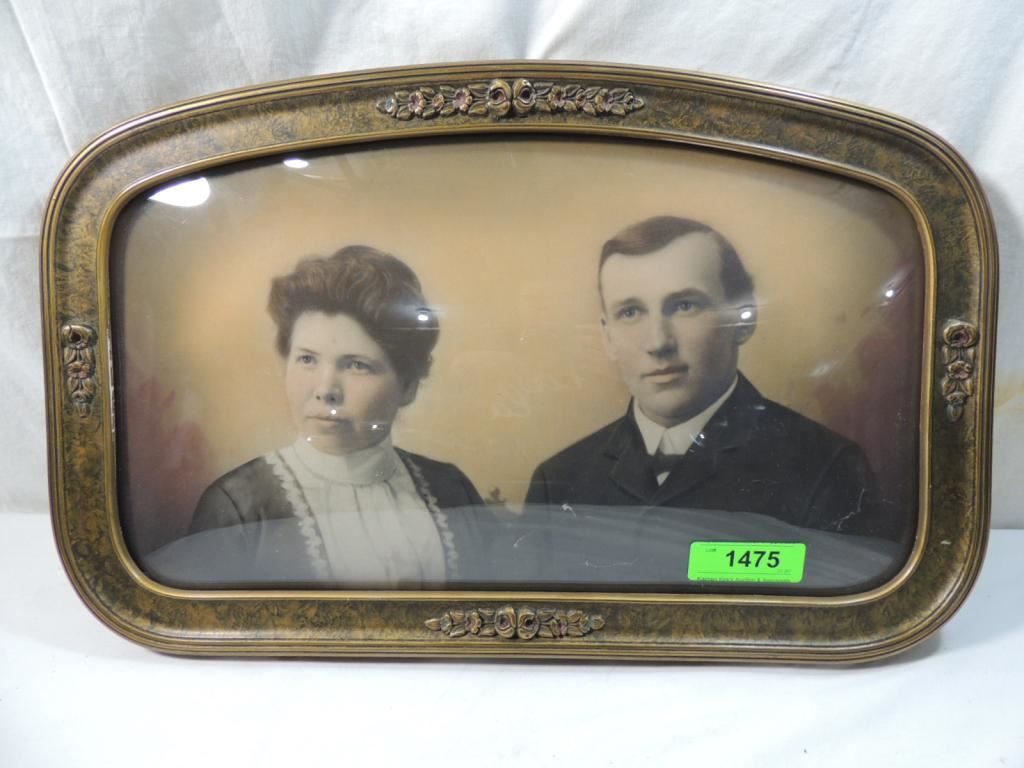 ANTIQUE COUPLE PHOTO DOMED GLASS FRAMED PHOTO ANTIQUE PHOTO COLORIZED PHOTO AS SHOWN SEE PHOTO FOR MORE DETAILS.