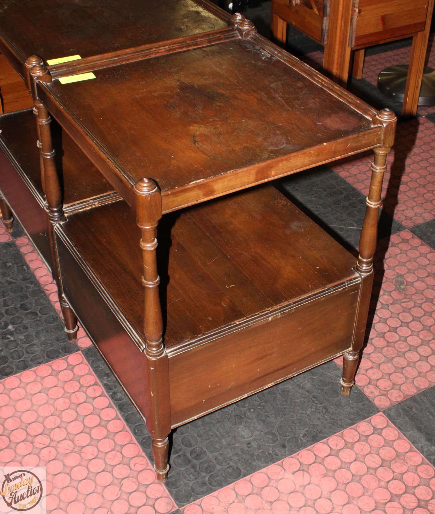 ANTIQUE DOUBLE TIER TWO DRAWER OCCASIONAL TABLE
