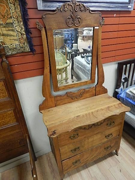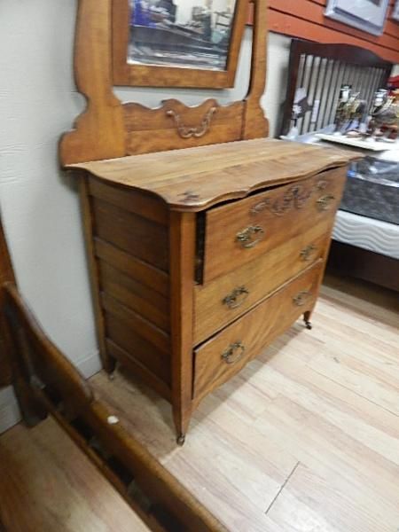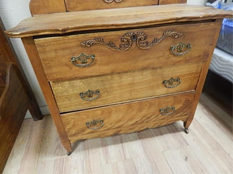 ANTIQUE DRESSER WITH MIRROR - 3 DRAWER