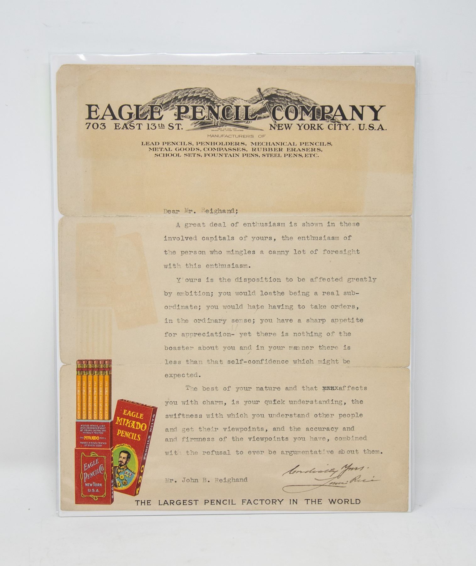 ANTIQUE EAGLE PENCIL COMPANY LETTER SIGNED