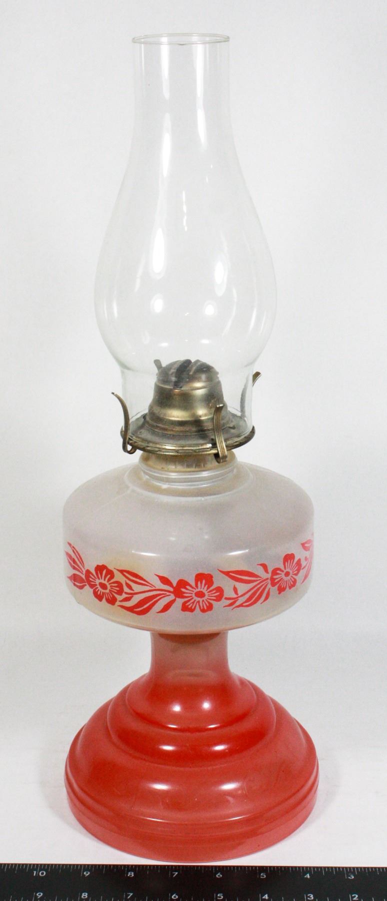 FLORAL WITH WHITE BACKGROUND GLASS KEROSENE OIL LAMP, QUEEN MARY. EXCELLENT CONDITION