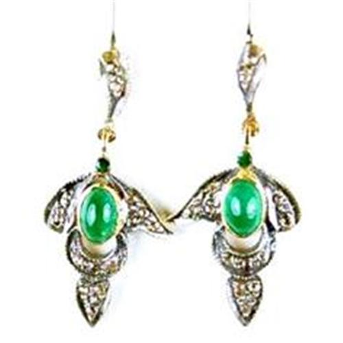 This pair of ANTIQUE Style Earrings are an AUTHENTIC and ACCURATE copy of a pair from the early 1900's but THIS pair is in MINT condition. Each Earring features an Oval EMERALD accented by Rose Cut DIAMONDS, and suspended from 14K GOLD Earwires. The Earrings measure 1.5" from the top of the Gold earwire to the bottom of the Earring.
