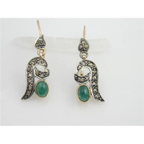 <tr><td>Title: ANTIQUE EARRINGS EMERALD w ROSE CUT DIAMONDS</td></tr>