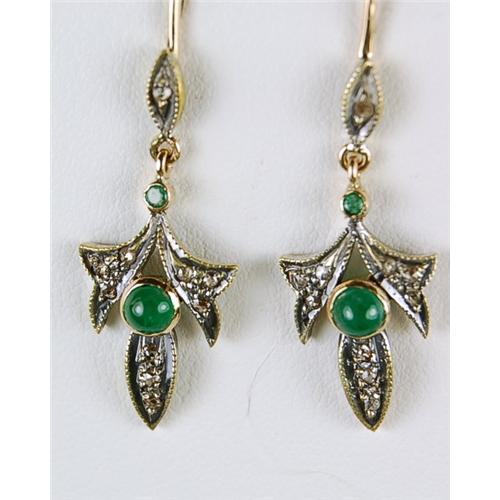 <tr><td>Title:ANTIQUE EARRINGS EMERALDS ROSE CUT DIAMONDS</td></tr>