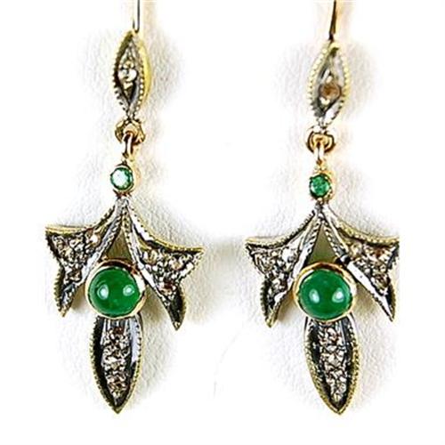 This pair of ANTIQUE Style Earrings are an AUTHENTIC and ACCURATE copy of a pair from the early 1900's but THIS pair is in MINT condition. Each Earring features a Round EMERALD accented by Rose Cut DIAMONDS, and suspended from 14K GOLD Earwires. The Earrings measure 1.5" from the top of the Gold earwire to the bottom of the Earring.