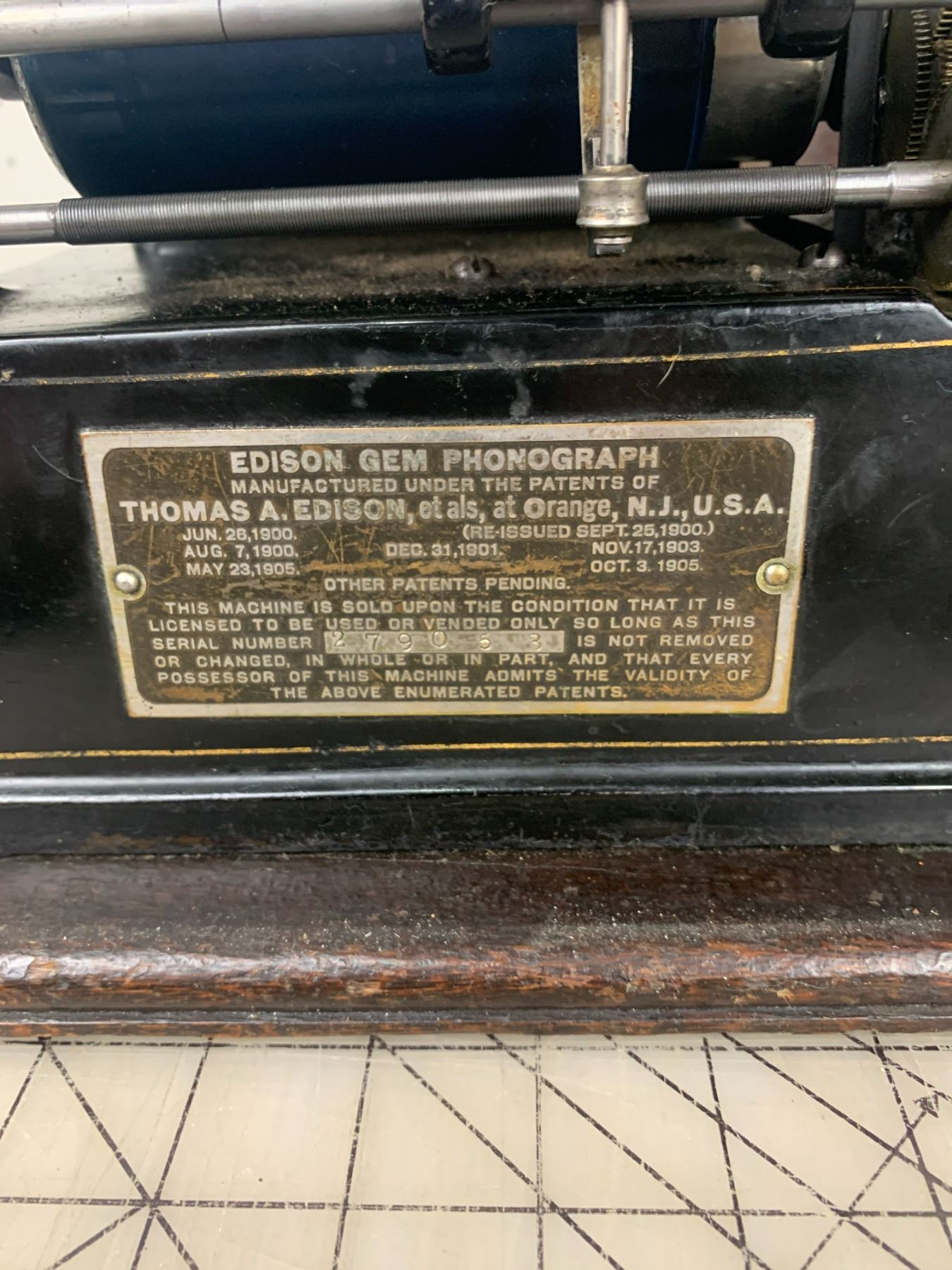 ANTIQUE EDISON GEM TABLE TOP PHONOGRAPH IN WORKING CONDITION