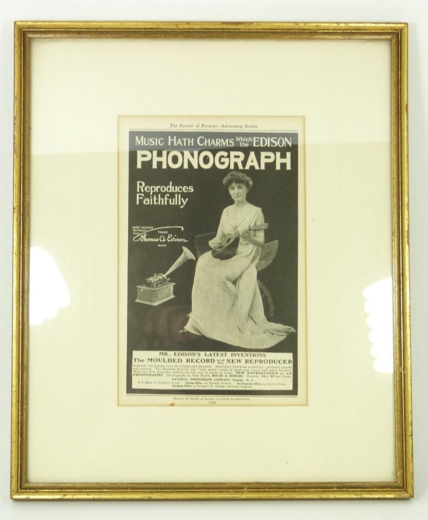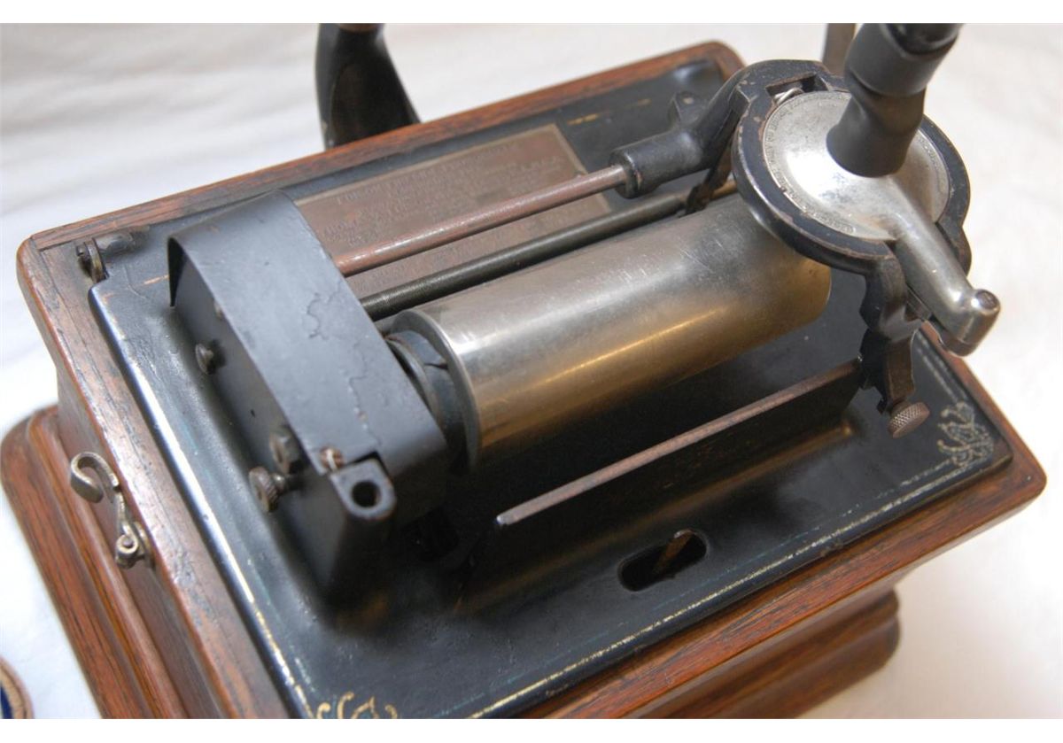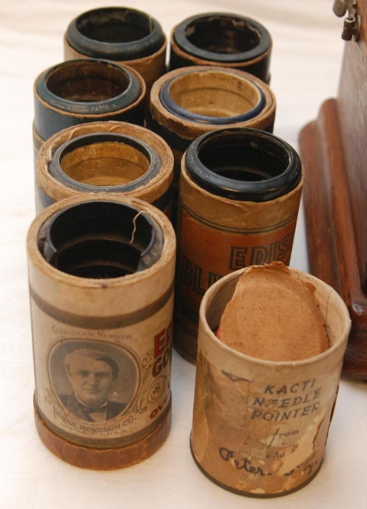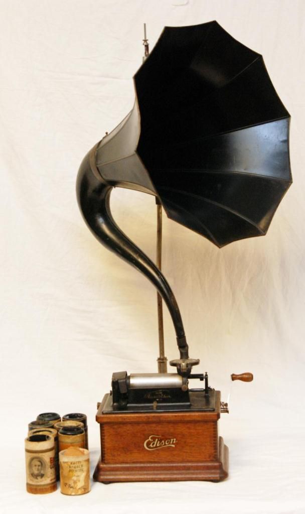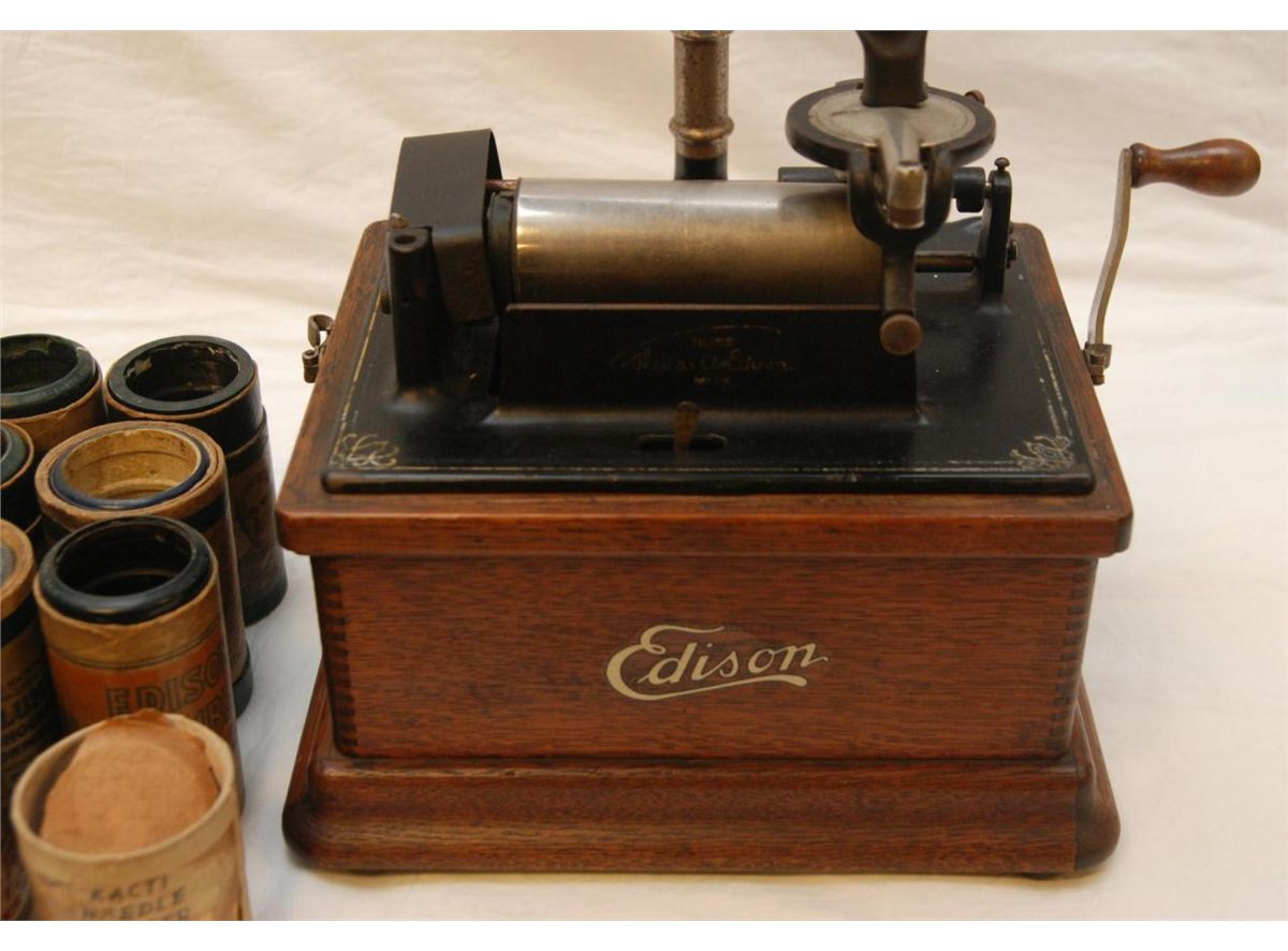Antique Edison phonograph including 8 music cylinders. Serial number 71031. 19th century. Measures 38" height (96.5cm).