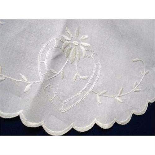 BEAUTIFUL ROUND CENTER PIECE, WHITE MADEIRA WITH WHITE EMBROIDERY, DEPICTING LOVELY HEARTS AND FLOWERS, ALL HAND MADE AND IN EXCELLENT CONDITION FREE OF HOLES OR STAINS,MEASURING ABOUT 16" IN DIAM.USBuyer to pay 4.00 for shipping plus insurance.THANKS.